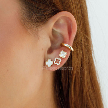 Brinco trio trevo com banho de ouro 18k