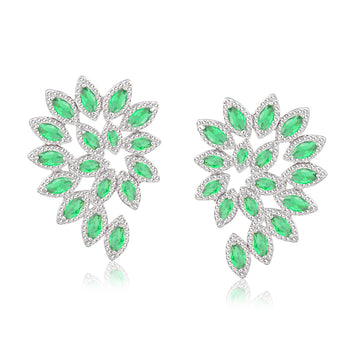 Brinco gotas esmeralda luxo com banho de ródio branco