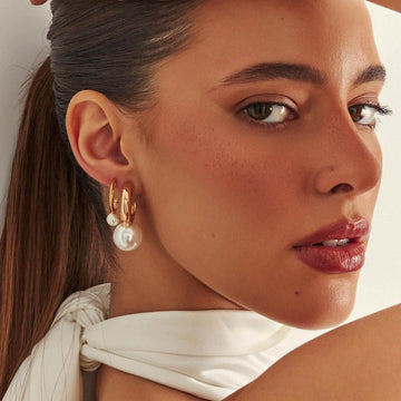 Garanta um visual clássico e elegante com o Brinco Argola Pérolas Média com Banho de...