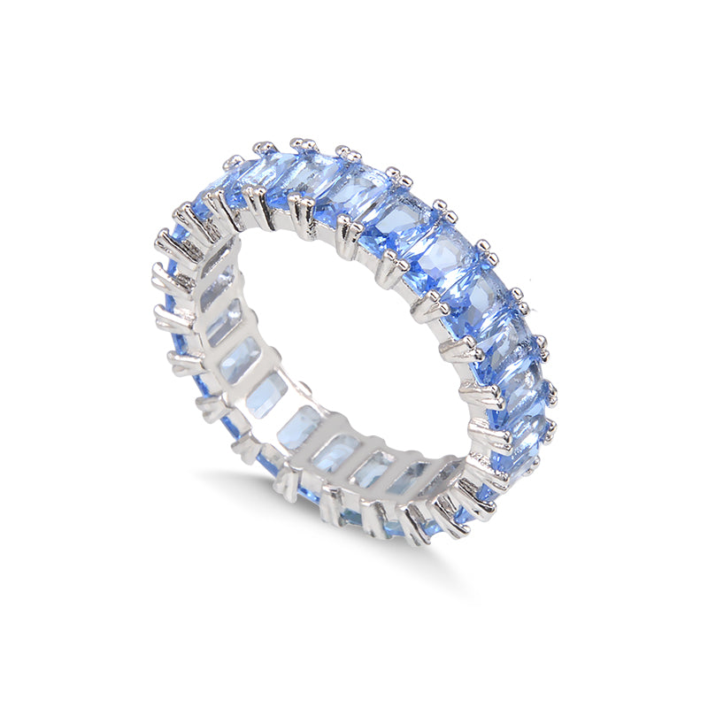 Deslumbrante anel aliança com delicados navetes de tanzanita que exibem um fascinante tom azul-violeta. O banho de ródio branco proporciona proteção extra e um acabamento luminoso que realça a beleza natural das pedras. Perfeito para momentos especiais ou para adicionar um toque de sofisticação ao seu dia a dia.