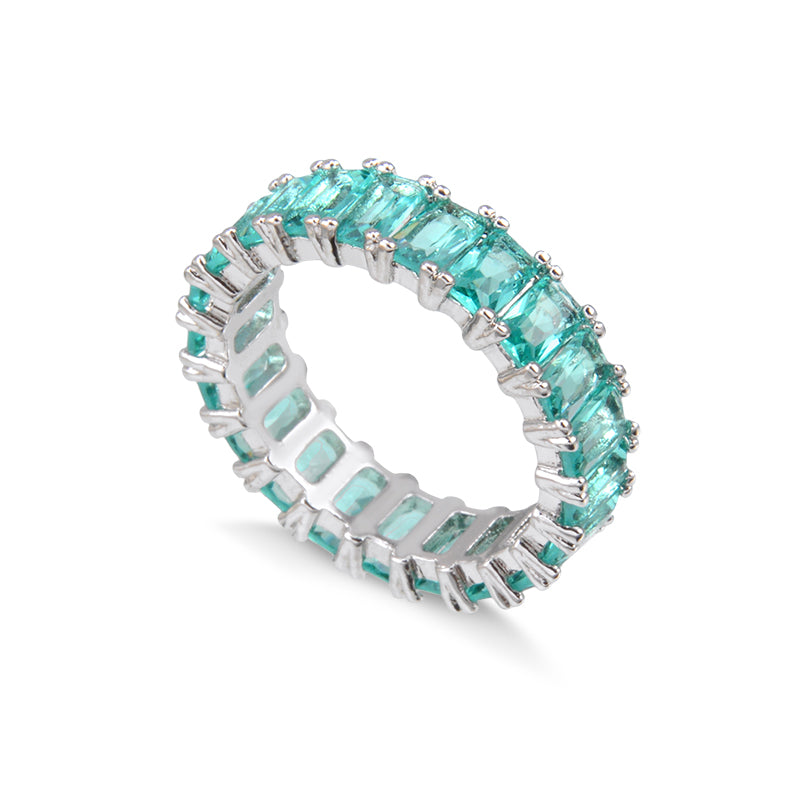Deslumbrante anel aliança com delicados navetes de Turmalina que exibem um fascinante tom verde. O banho de ródio branco proporciona proteção extra e um acabamento luminoso que realça a beleza natural das pedras. Perfeito para momentos especiais ou para adicionar um toque de sofisticação ao seu dia a dia.
