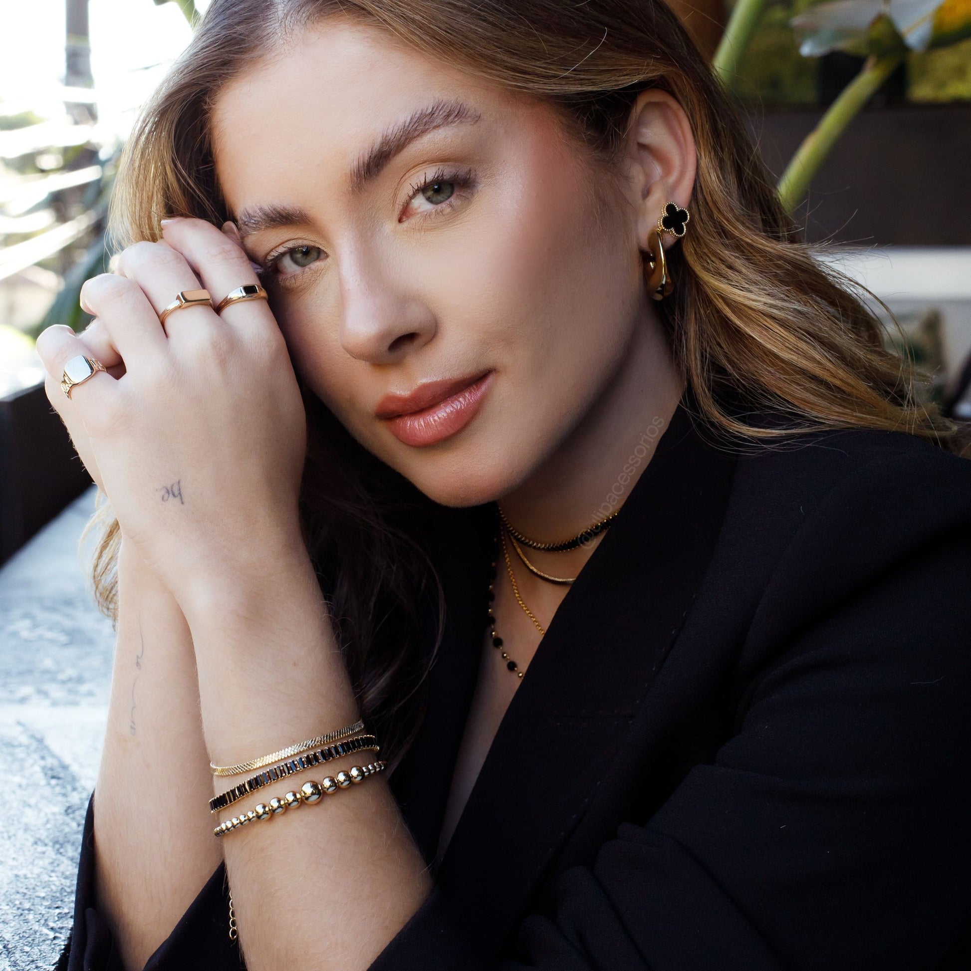 Este anel de dedinho com design quadrado liso e detalhes laterais em elos é ajustável para garantir conforto e encaixe perfeito. Com banho de ouro 18k, oferece brilho duradouro e sofisticação, ideal para quem busca um acessório delicado e elegante para complementar qualquer look.