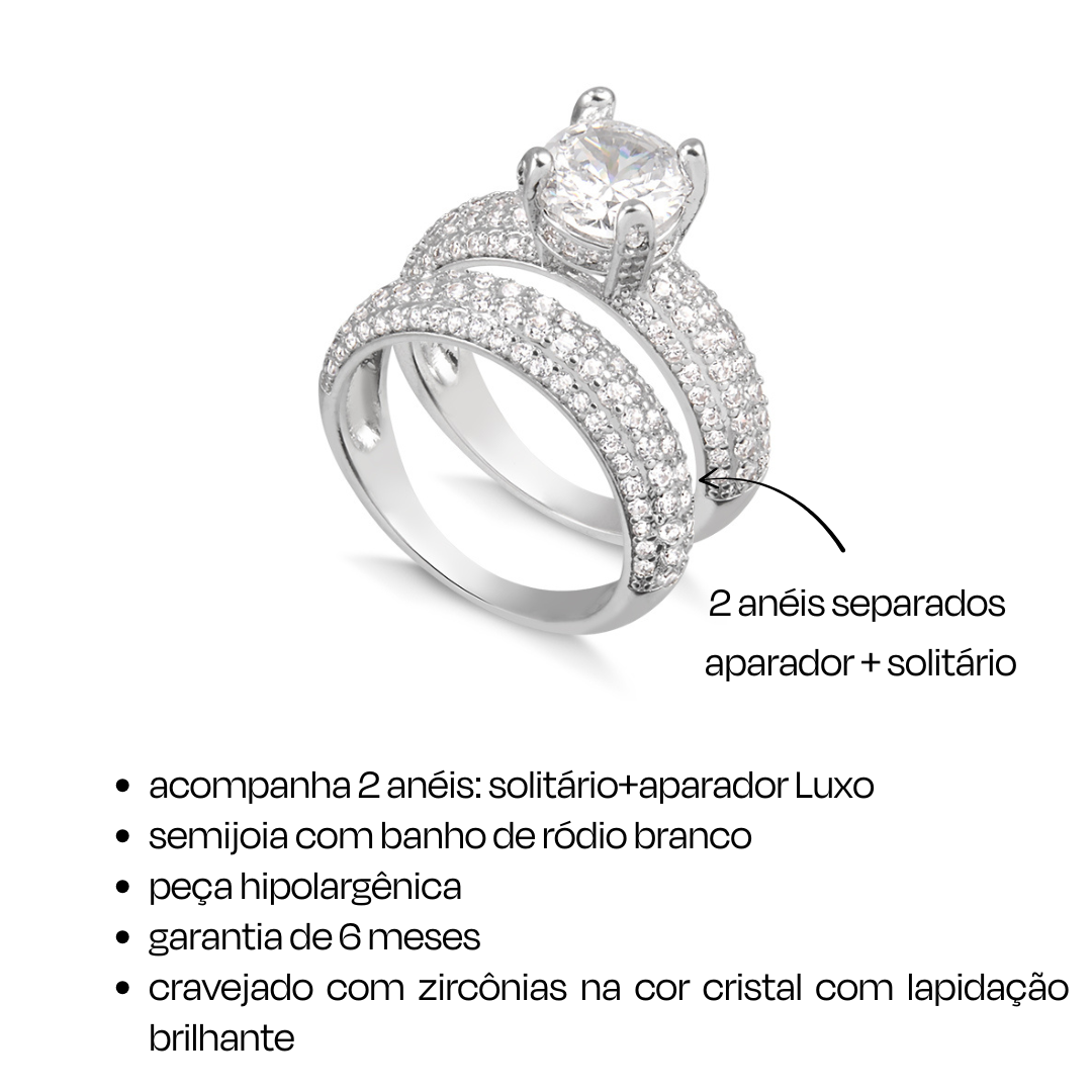 Este anel duplo solitário combina elegância e sofisticação com seu banho de ródio branco de luxo e lapidação brilhante em zircônia. Composto por dois anéis separados — um aparador e um solitário cravejado —, oferece versatilidade para criar looks únicos e destacar seu estilo com brilho intenso e acabamento impecável. Ideal para quem busca um acessório que une delicadeza e presença marcante.