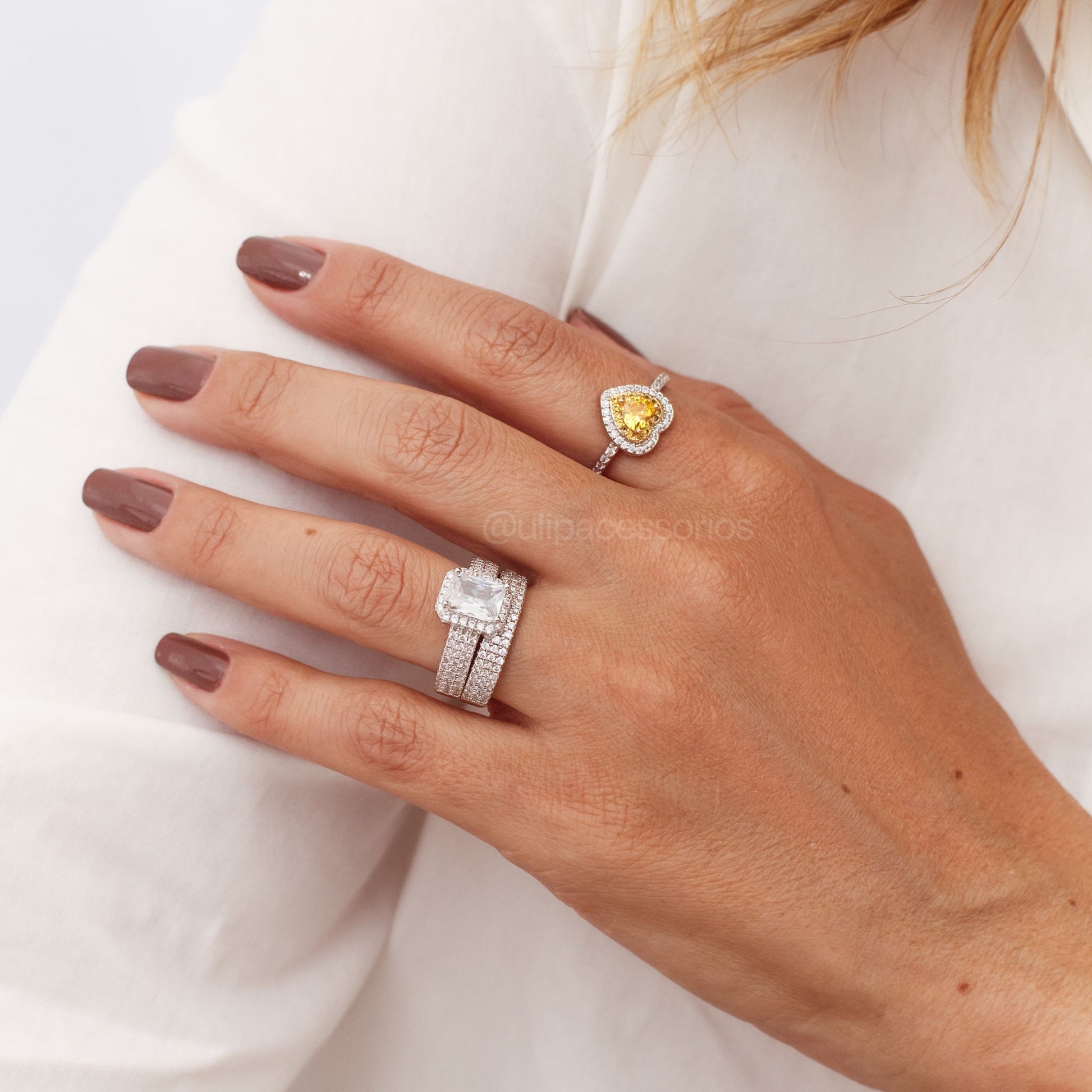 Este anel duplo solitário retangular com aparador, banhado a ródio branco, é a escolha perfeita para quem busca elegância e sofisticação. O banho de ródio proporciona brilho duradouro, enquanto o design moderno realça a beleza da pedra, garantindo um toque de luxo e exclusividade ao seu visual. Ideal para ocasiões especiais ou para destacar seu estilo no dia a dia.