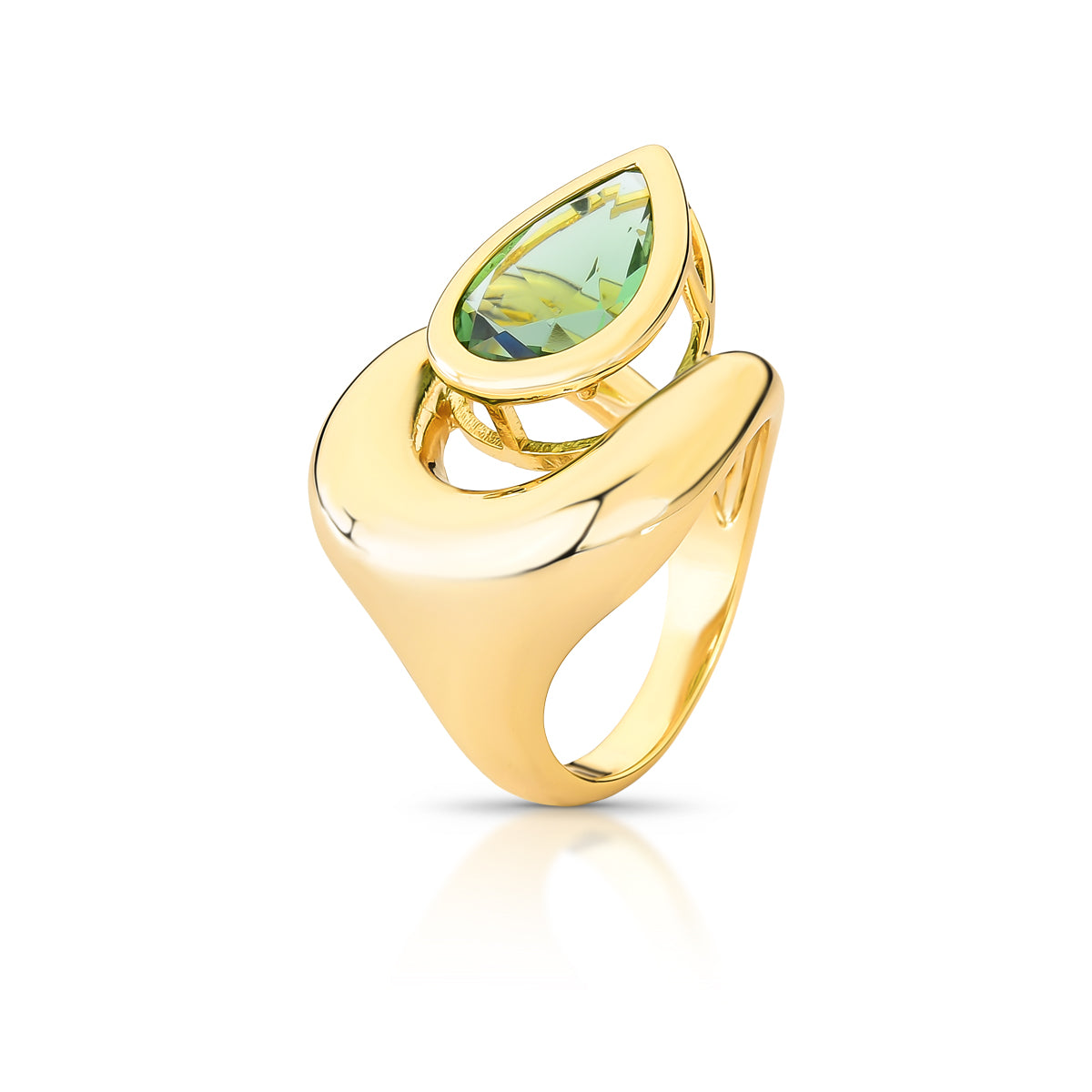 Anel delicado com pedra gota em verde clara que captura a luz com elegância natural. O banho de ouro 18k confere um acabamento sofisticado e duradouro, realçando a beleza da gema. Perfeito para quem busca uma peça versátil que combina com qualquer ocasião, do dia a dia aos momentos especiais. Um acessório que expressa refinamento e bom gosto.