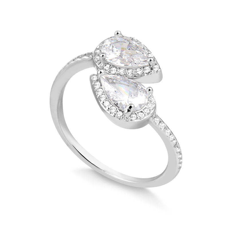 Este anel gotas, banhado em ródio branco, destaca-se pelo design delicado e sofisticado. A zircônia cristal envolvente confere brilho intenso e elegância, valorizando qualquer look. Perfeito para quem busca um acessório versátil que realça a beleza com um toque de modernidade e requinte.