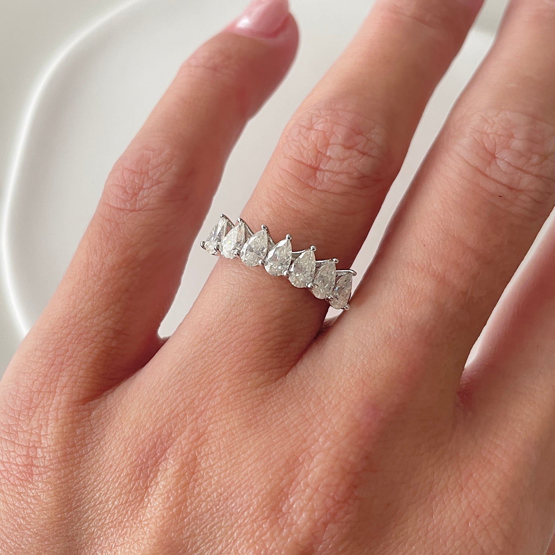 Este anel meia aliança com gotas de moissanite em prata 925 combina elegância e brilho incomparável. A moissanite oferece um brilho intenso e duradouro, enquanto a prata 925 garante resistência e conforto no uso diário. Perfeito para quem busca um acessório sofisticado que valoriza qualquer ocasião com delicadeza e estilo.