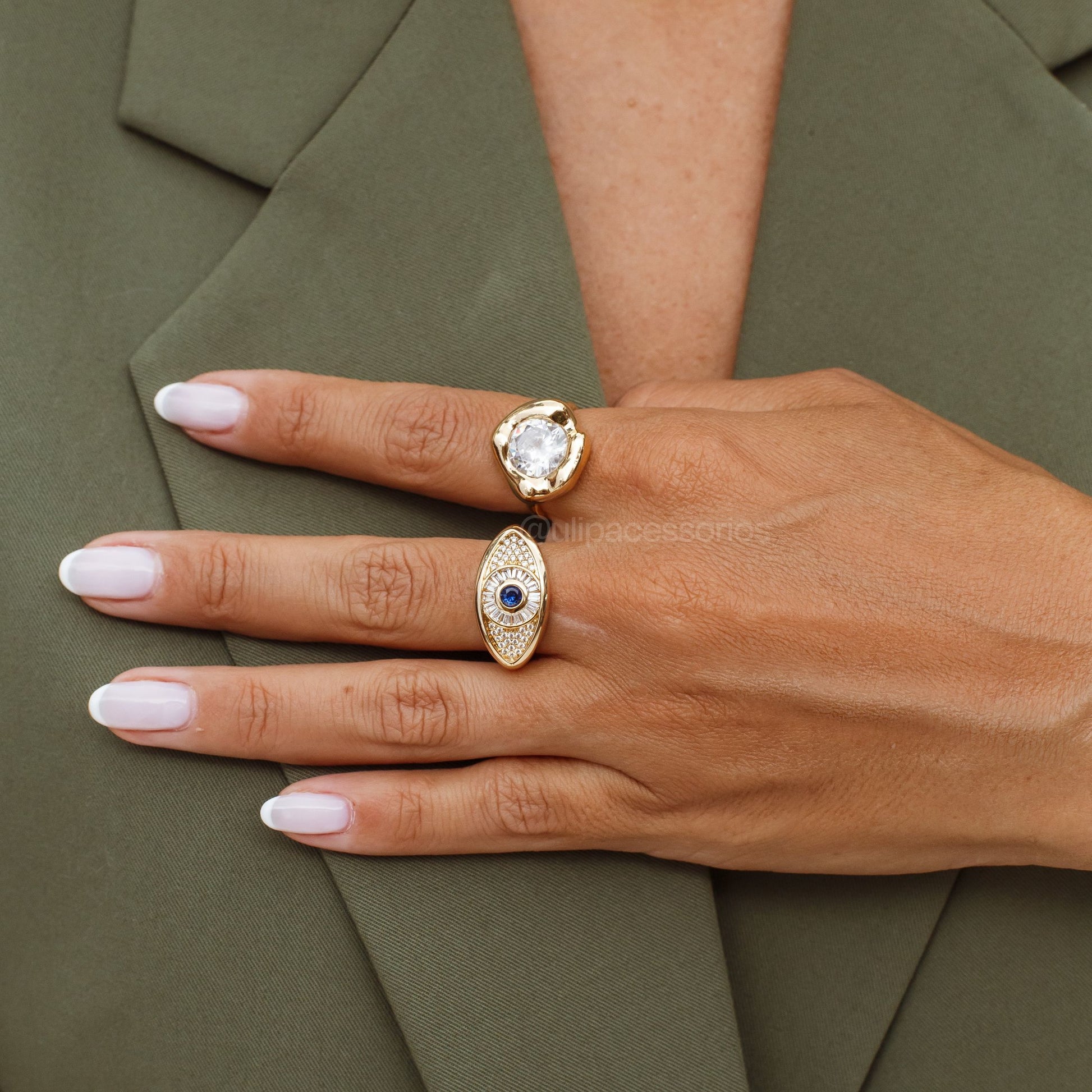 Anel delicado com design do olho grego, símbolo de proteção e energia positiva. Confeccionado com banho de ouro 18k, oferece brilho duradouro e elegância atemporal. Perfeito para uso diário ou ocasiões especiais, combina espiritualidade com sofisticação. Ideal para quem busca um acessório com significado e estilo.