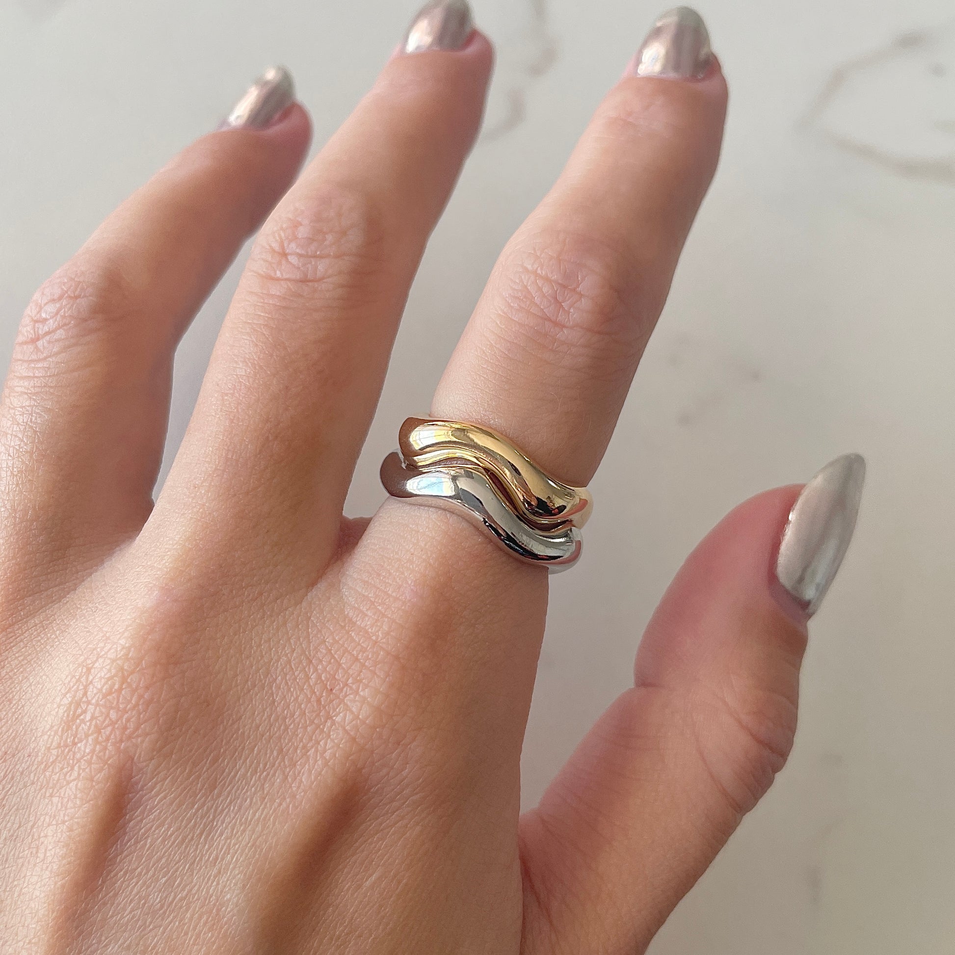 Este anel ondulado liso com banho de ouro 18k combina elegância e modernidade em um design sofisticado. Seu acabamento refinado oferece brilho duradouro e resistência ao desgaste, garantindo um acessório versátil que valoriza qualquer look com delicadeza e estilo. Ideal para quem busca um toque sutil de charme em seu visual.