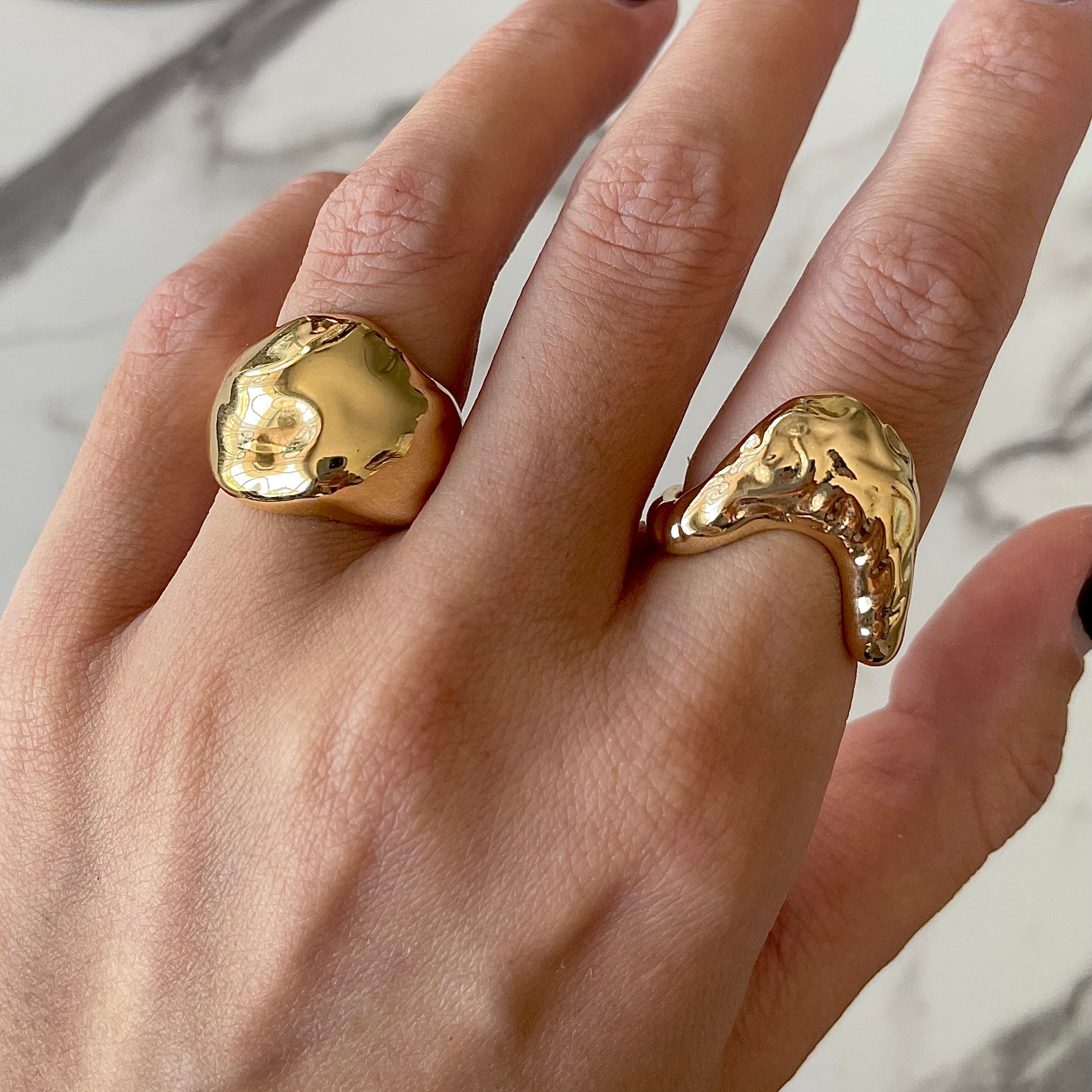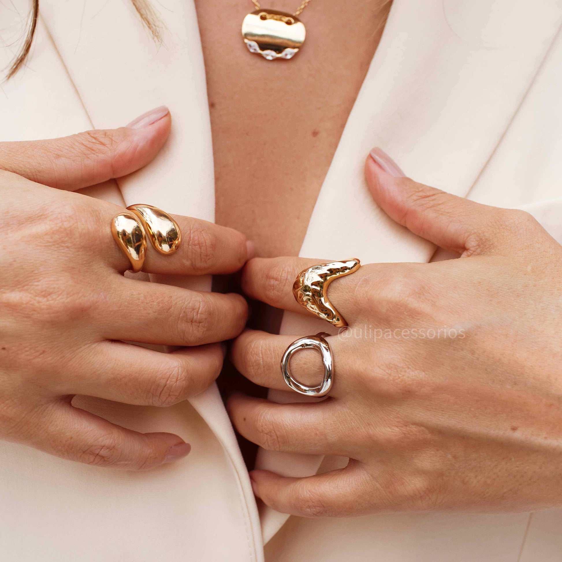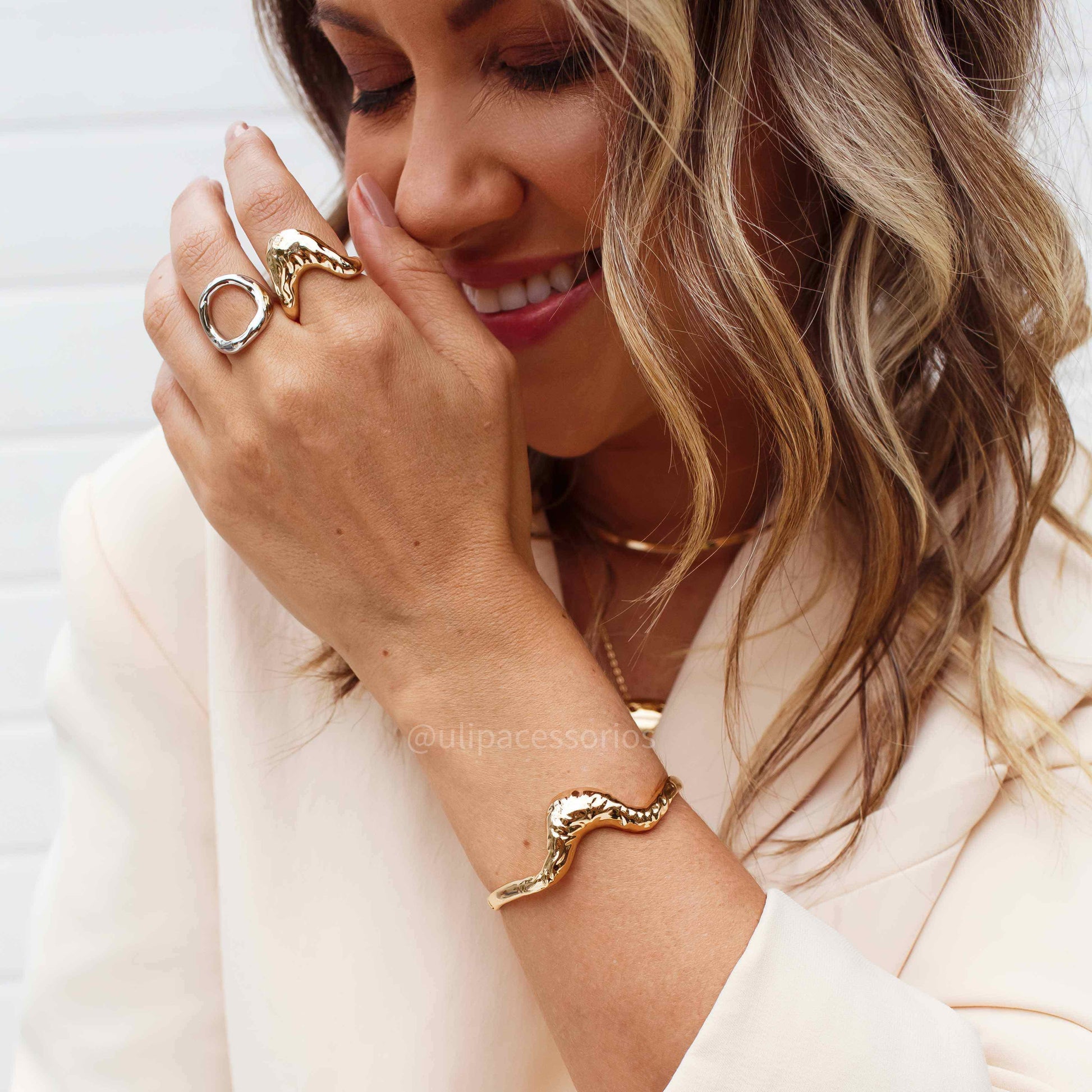 Encante-se com nosso anel com design orgânico ondulado, uma verdadeira obra de arte para seus dedos. O exclusivo banho de ouro 18k garante durabilidade superior e um brilho deslumbrante que não passa despercebido. Suas linhas fluidas e design contemporâneo combinam com qualquer ocasião, adicionando um toque de sofisticação que eleva instantaneamente seu estilo pessoal.
