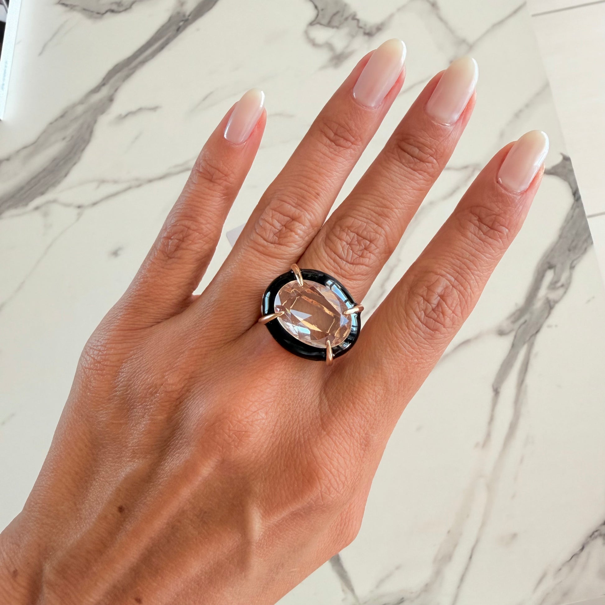 Elegância sofisticada em cada detalhe. Este anel oval combina a modernidade da resina preta com o luxo do banho de ouro 18k, criando uma peça versátil que se adapta a qualquer ocasião. O design minimalista e refinado destaca-se no pulso, enquanto o acabamento em ouro proporciona um brilho discreto e duradouro. Perfeito para quem busca acessórios que unem estilo contemporâneo com qualidade premium. Uma escolha impecável para complementar seu visual com sofisticação.