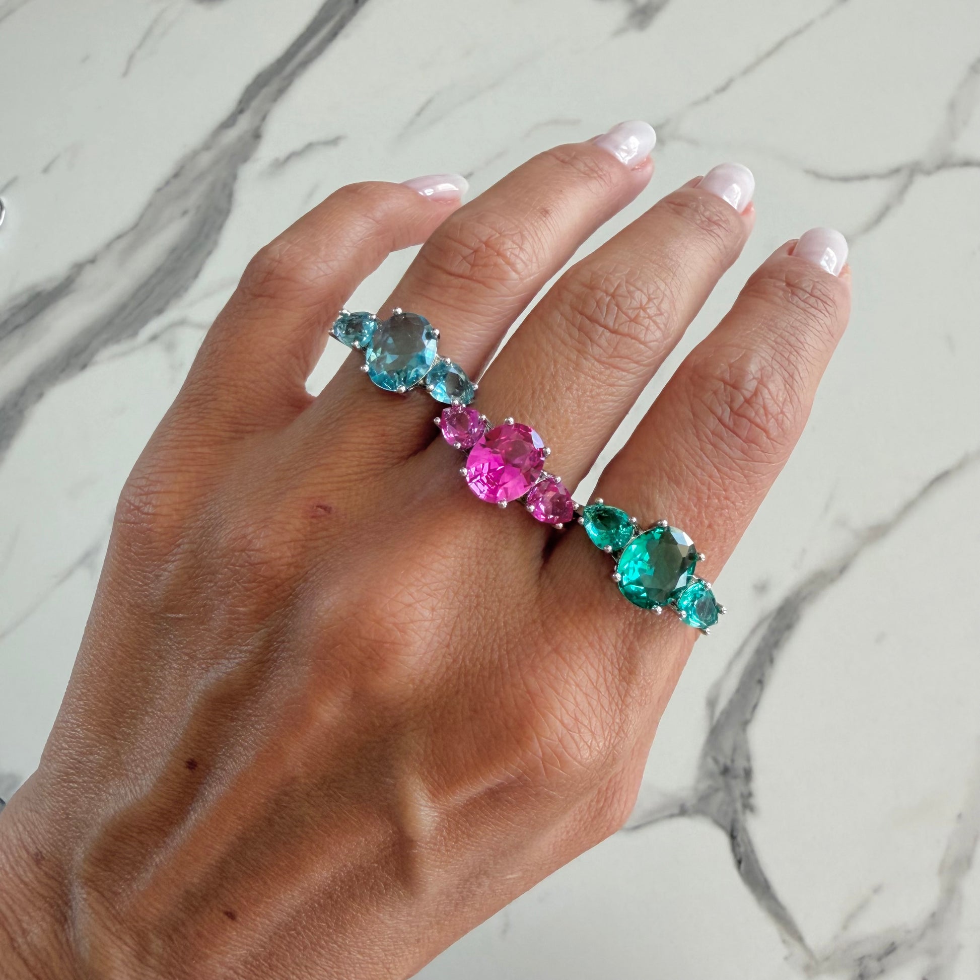 Anel requintado que une duas formas geométricas em perfeita harmonia: uma turmalina rosa oval e outra em gota, criando um design contemporâneo e envolvente. O banho de ródio branco realça o brilho, conferindo um acabamento premium e sofisticado. Perfeito para quem deseja um acessório versátil que transita com elegância entre momentos do dia a dia e ocasiões especiais, adicionando um toque de feminilidade e refinamento ao seu estilo pessoal.