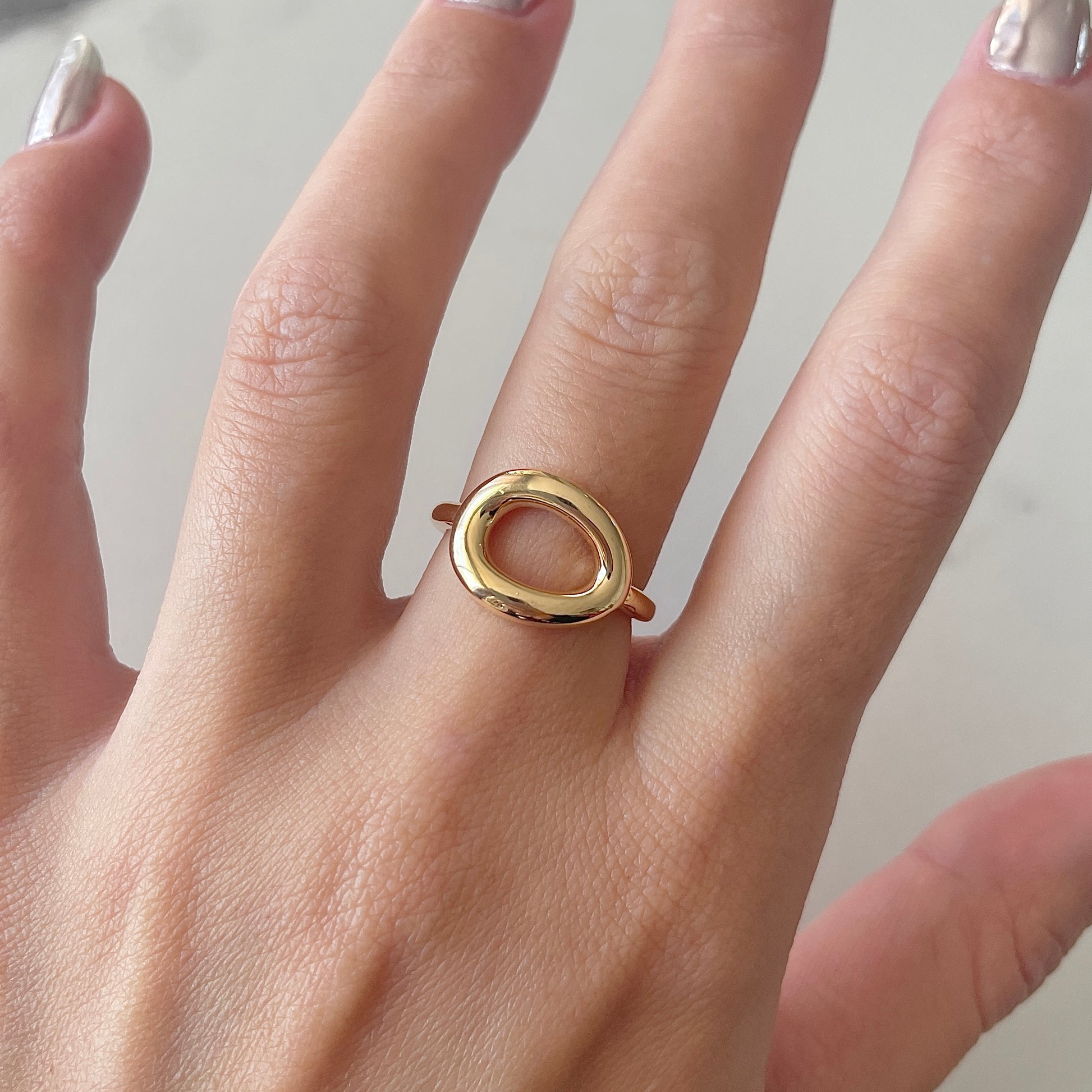 Descubra o anel oval vazado liso com banho de ródio branco, uma peça leve e moderna que valoriza seu estilo com sofisticação. Seu design minimalista oferece conforto ao usar. Ideal para adicionar um toque elegante e contemporâneo ao seu visual, seja no dia a dia ou em ocasiões especiais.