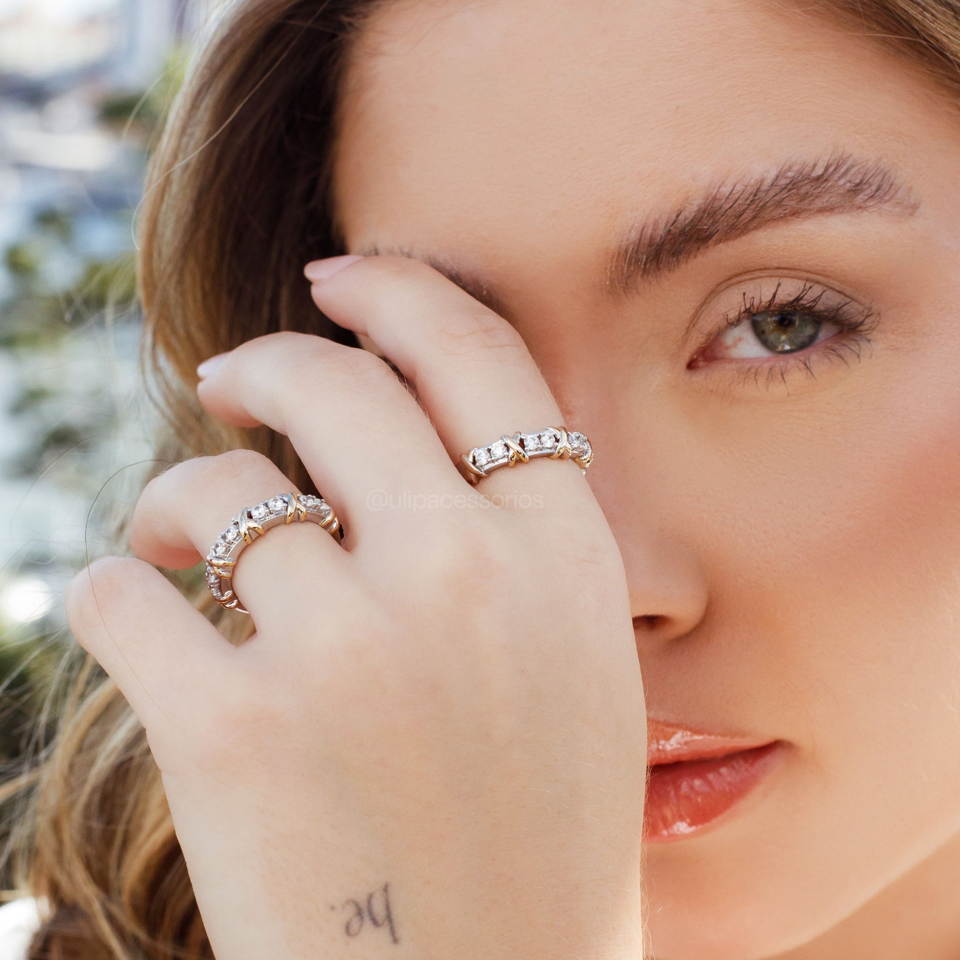 Este anel Riviera em prata 925 combina elegância e modernidade com seu detalhe em "X" dourado, criando um visual sofisticado e único. Perfeito para quem busca um acessório versátil que valoriza qualquer look, do casual ao formal. A qualidade da prata 925 garante durabilidade e brilho duradouro, enquanto o design delicado destaca sua personalidade com charme e estilo. Um toque especial para realçar sua beleza em todas as ocasiões.