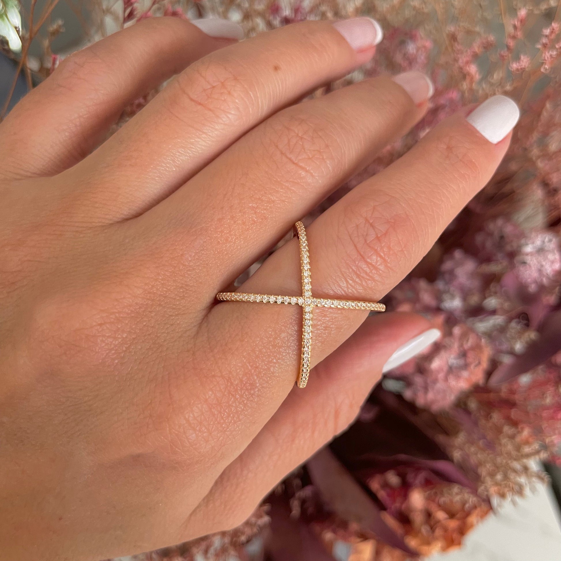 Este anel X cravejado com banho de ouro 18k combina elegância e brilho para destacar seu estilo com sofisticação. Seu design delicado e acabamento impecável garantem um toque de luxo discreto, perfeito para ocasiões especiais ou para valorizar o visual do dia a dia. Um acessório versátil que realça sua beleza com charme e modernidade.