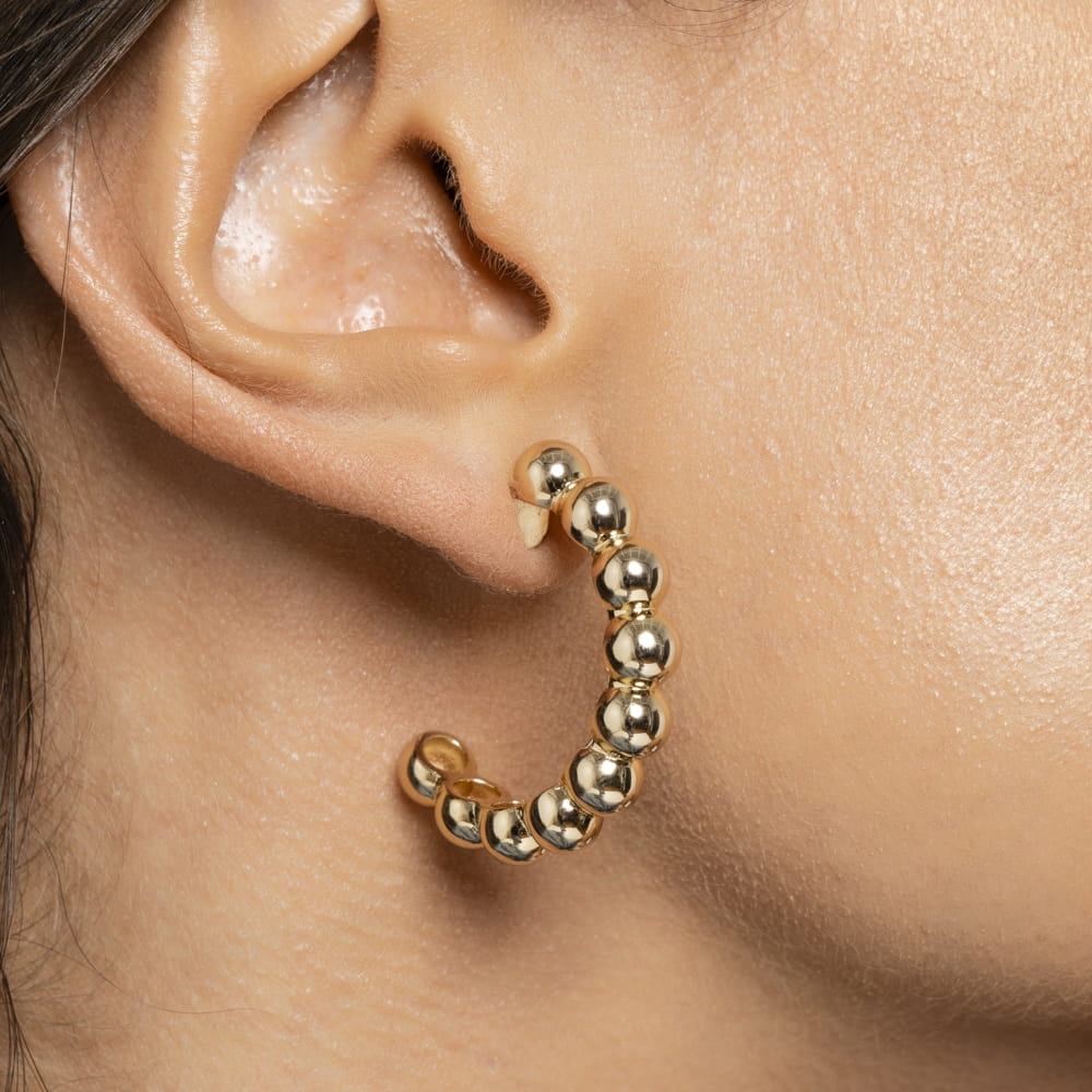 Este brinco de argola com meia esferas lisas banhado a ouro 18k traz um toque de elegância e sofisticação para qualquer look. Seu acabamento delicado e brilho duradouro valorizam o visual com charme e modernidade, sendo a escolha perfeita para quem busca estilo e qualidade em acessórios. Além de realçar sua beleza, é uma peça versátil que combina facilmente com diferentes ocasiões.