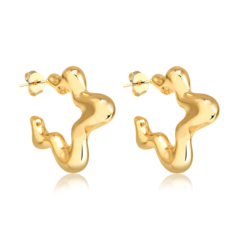 Destaque seu estilo com o brinco argola estrela orgânica bold, banhado em ouro 18k para um acabamento luxuoso e duradouro. Seu design marcante e contemporâneo adiciona personalidade a qualquer look, perfeito para quem busca elegância com atitude. Uma peça versátil que transforma sua presença com sofisticação e confiança.