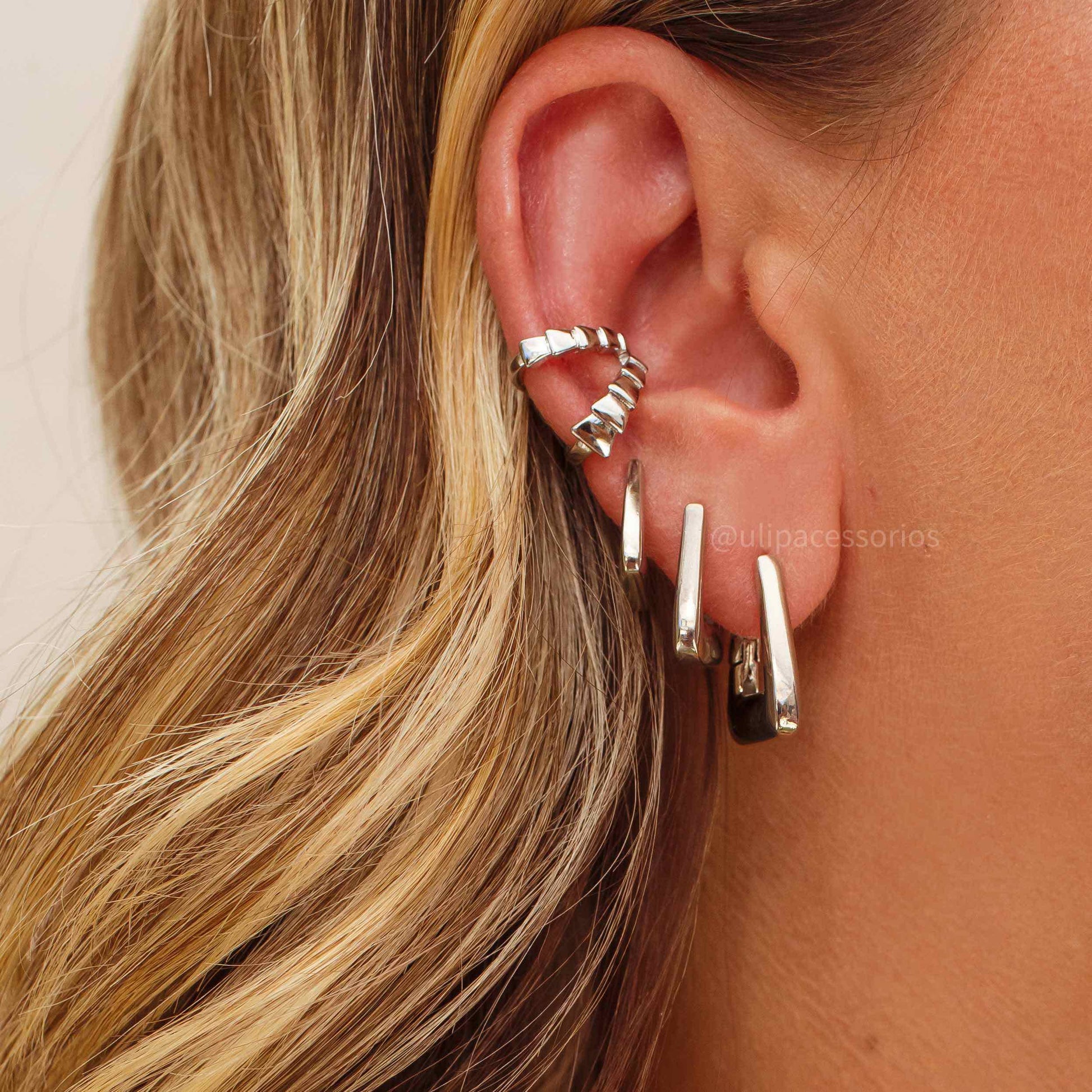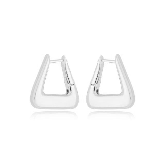 O brinco argola G Silvia triangular lisa com banho de ródio branco une design contemporâneo e sofisticação. Seu formato triangular exclusivo e acabamento liso destacam-se com elegância, enquanto o banho de ródio branco garante brilho intenso. Um acessório versátil que valoriza qualquer visual com charme e personalidade.