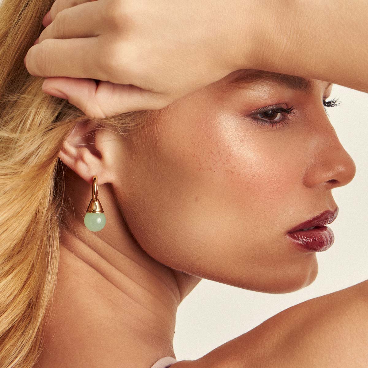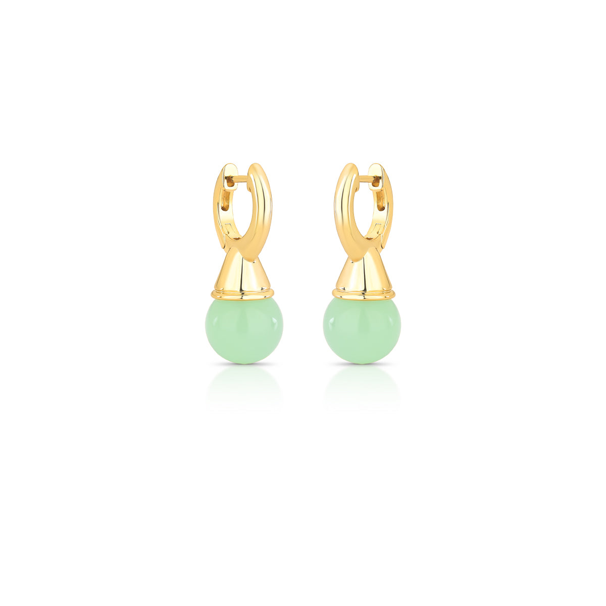 Brinco argola gota pingente pingo verde claro com banho de ouro 18k