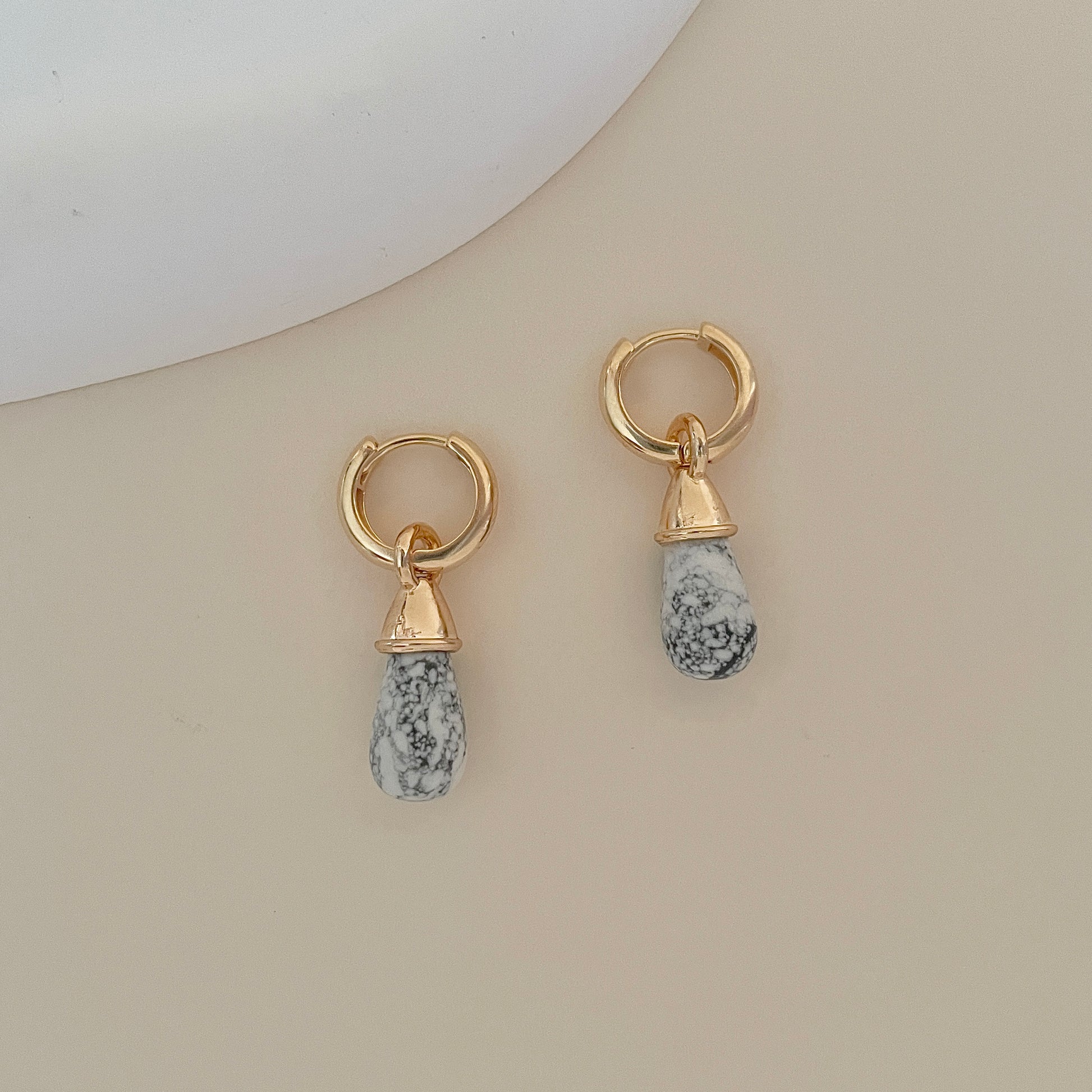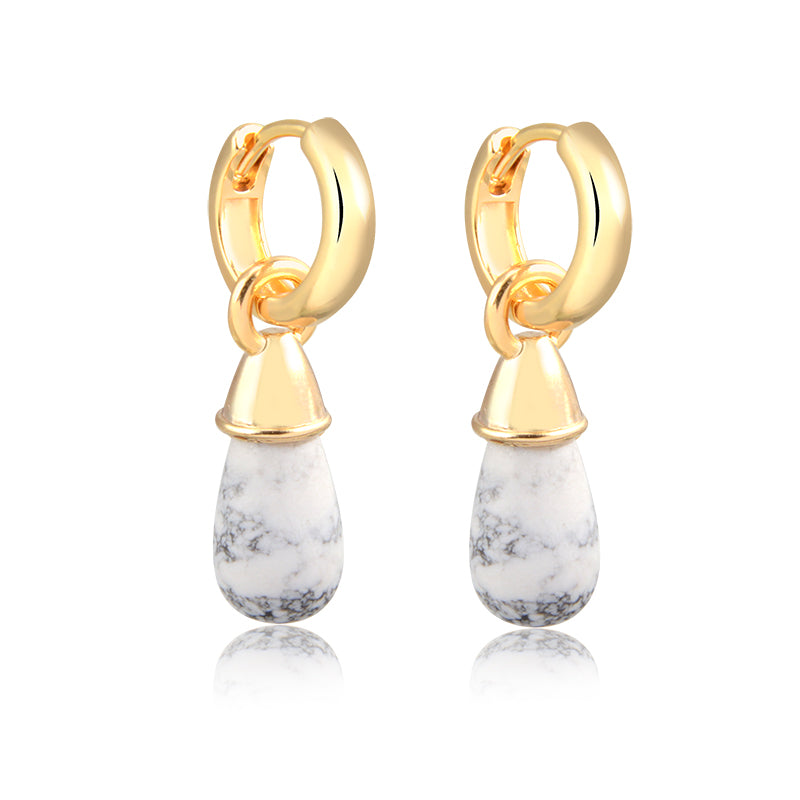 Brinco argola Isla mini pingente em pedra natural howlita e banho de ouro 18k