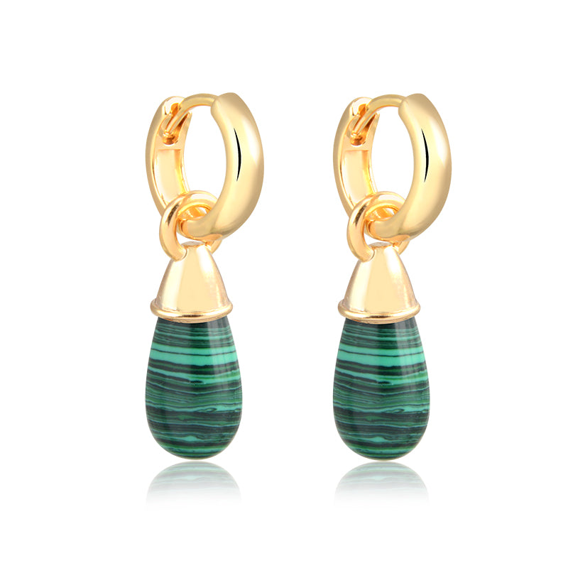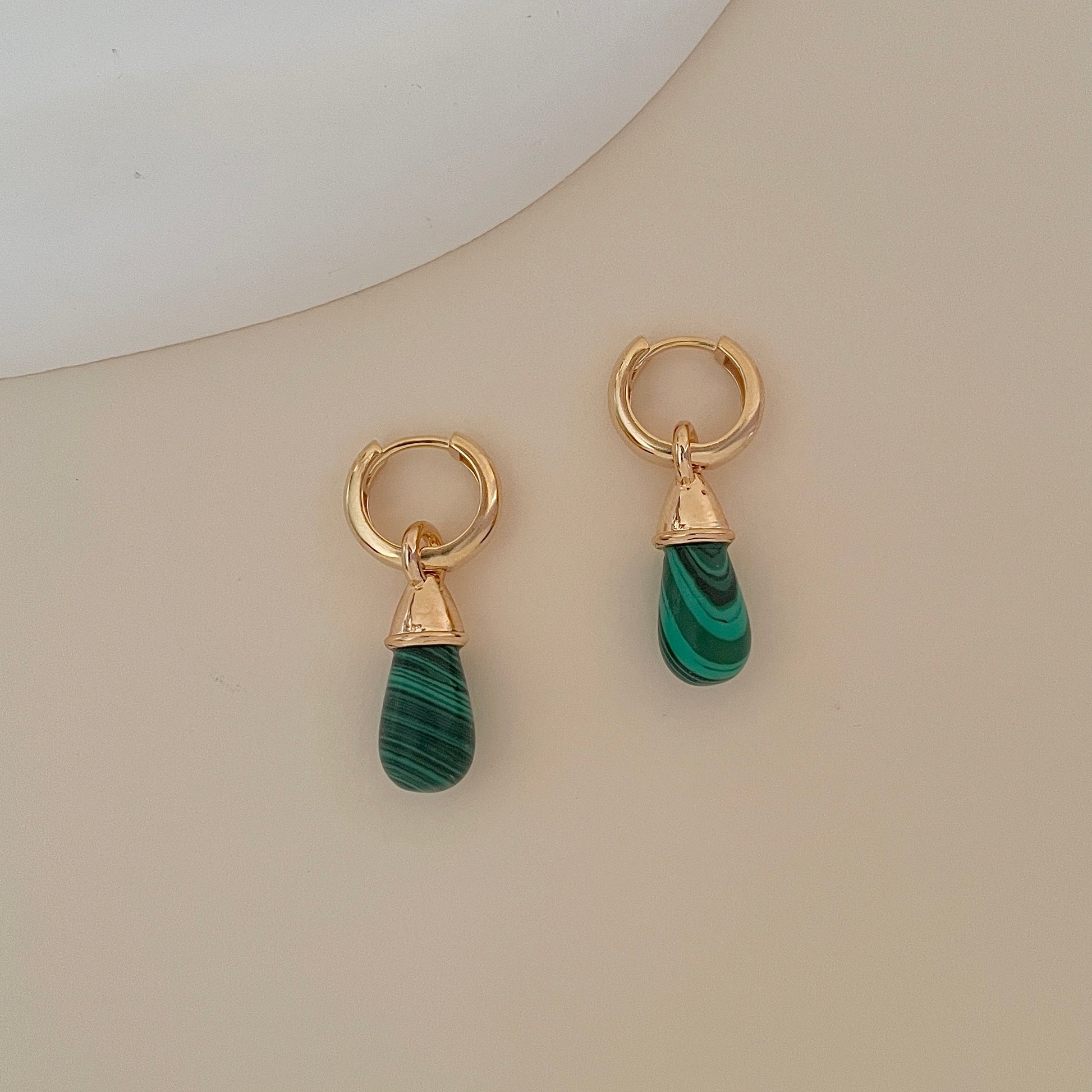 Brinco argola Isla mini com pingente em pedra natural malaquita e banho de ouro 18k