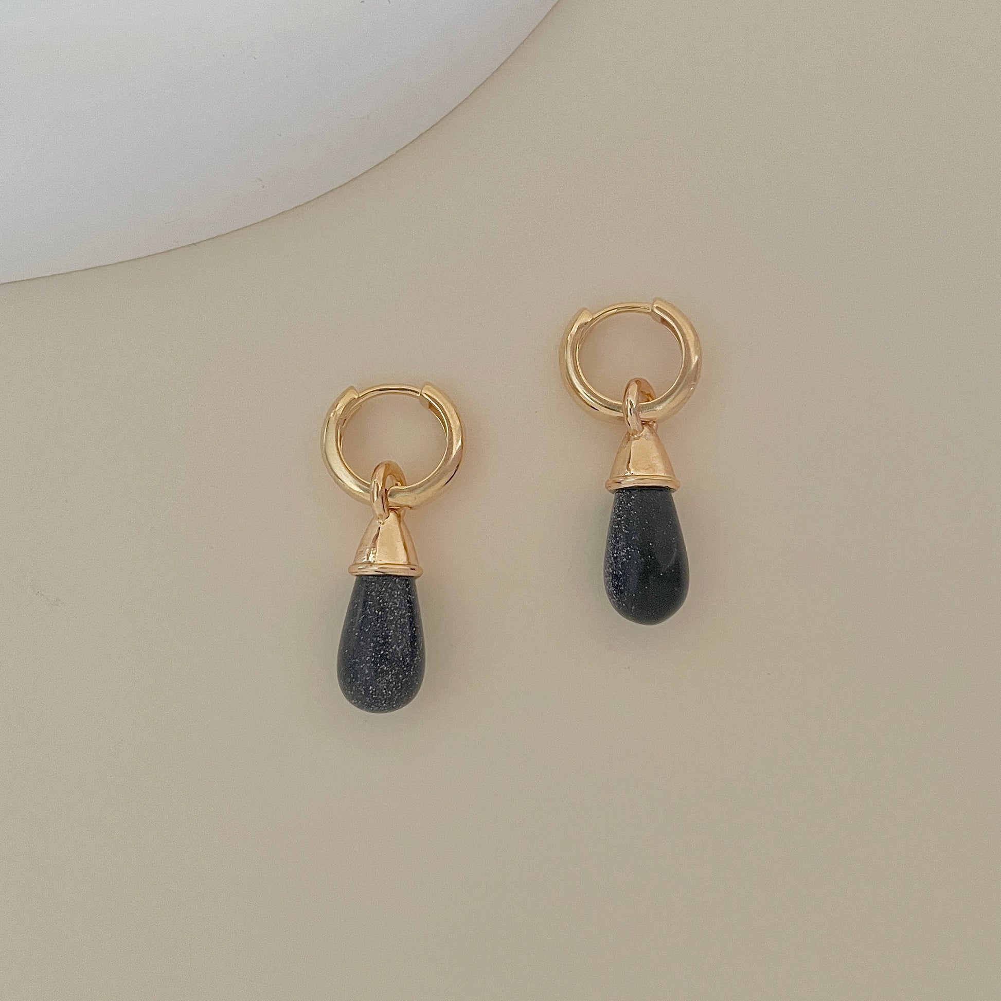 Brinco argola Isla mini com pingente em pedra natural goldstone azul e banho de ouro 18k