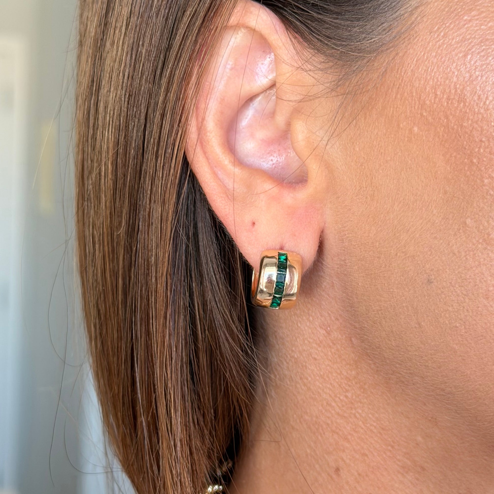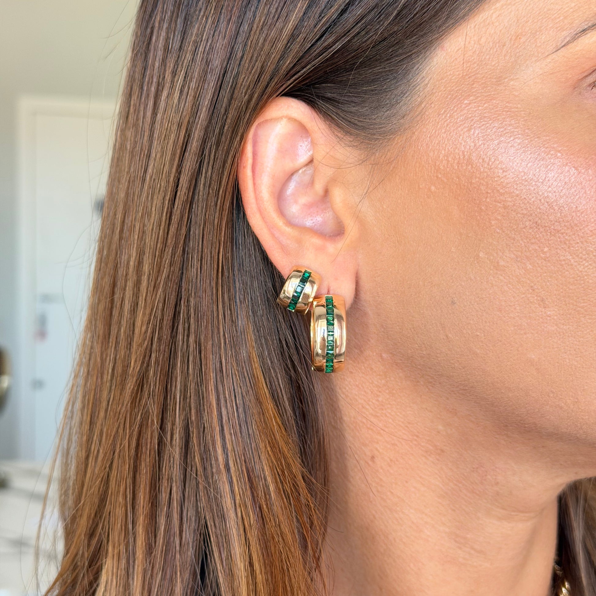 Brinco argola menor baguetes esmeralda com banho de ouro 18k