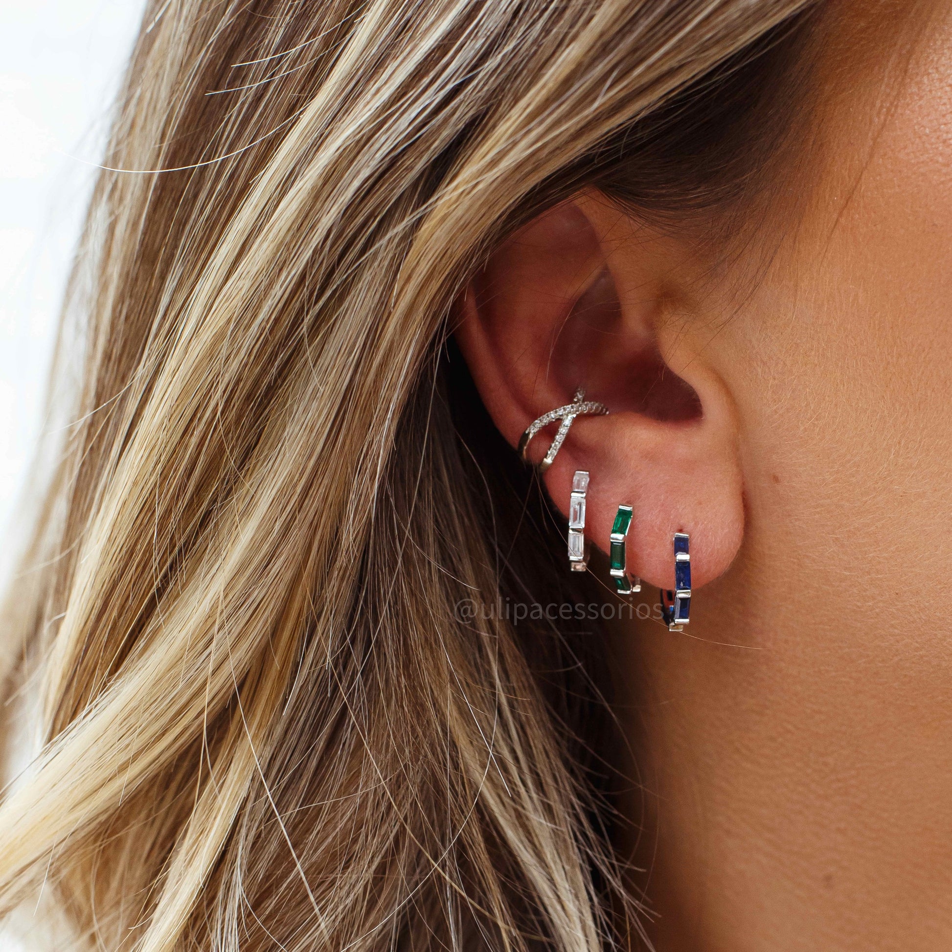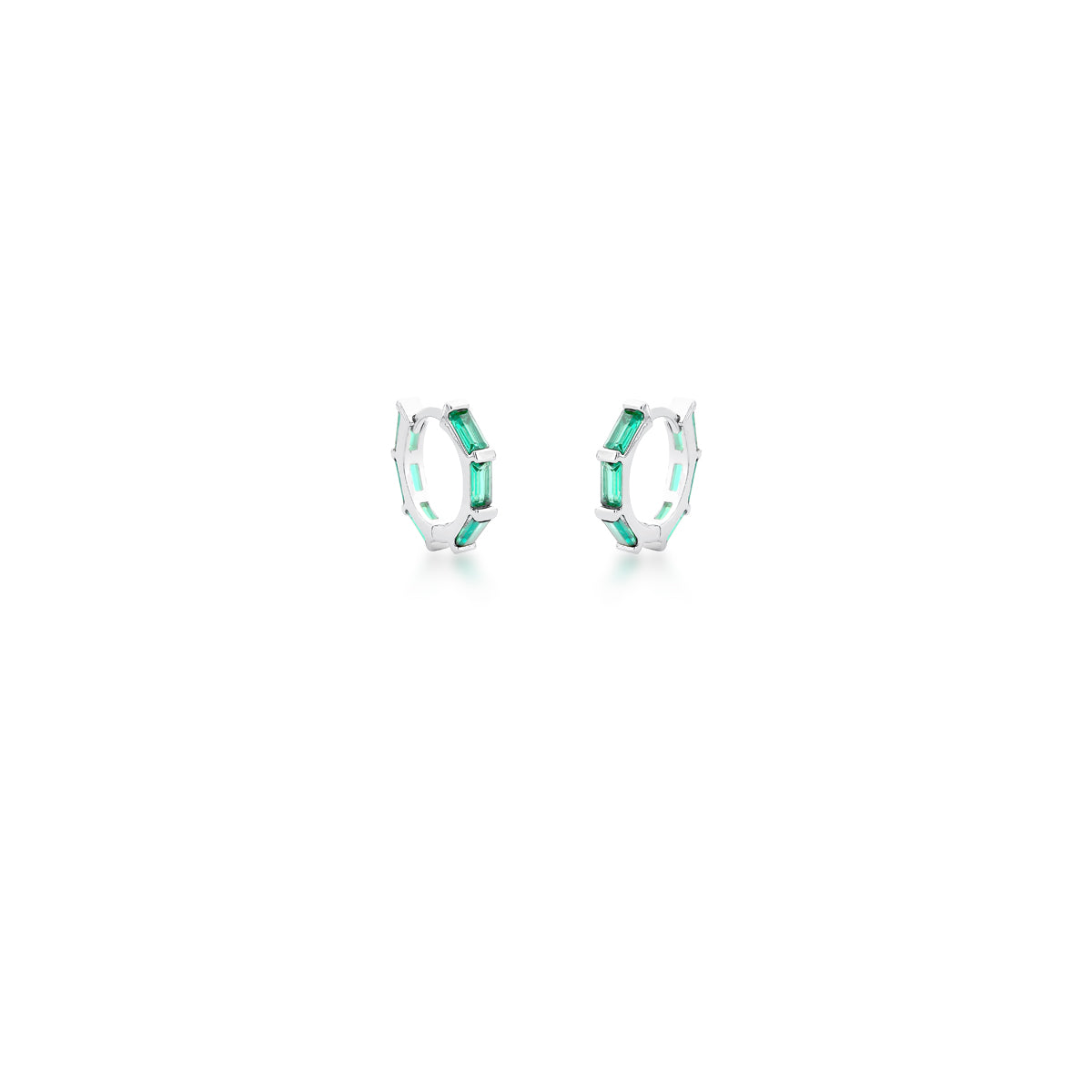 Realce sua elegância com este brinco argola em prata 925, adornado com baguetes de esmeralda que trazem um toque sofisticado e vibrante. Seu design clássico e refinado valoriza qualquer look, perfeito para ocasiões especiais ou para dar um charme extra ao dia a dia. Um acessório que combina durabilidade e beleza para você brilhar com estilo único.