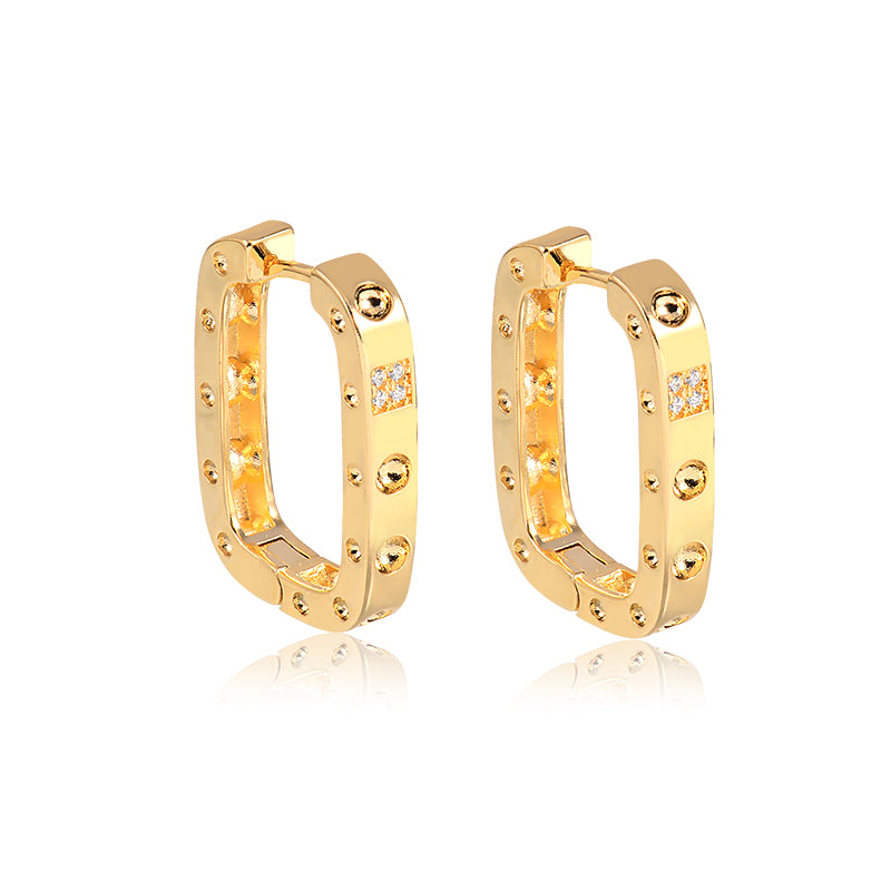 Elevação e requinte são garantidos com nosso brinco argola quadrada, com detalhes geométricos e banho de ouro 18k. Adicione um toque de luxo a qualquer look com essa peça única e sofisticada. Surpreenda-se com a qualidade e elegância desse brinco!