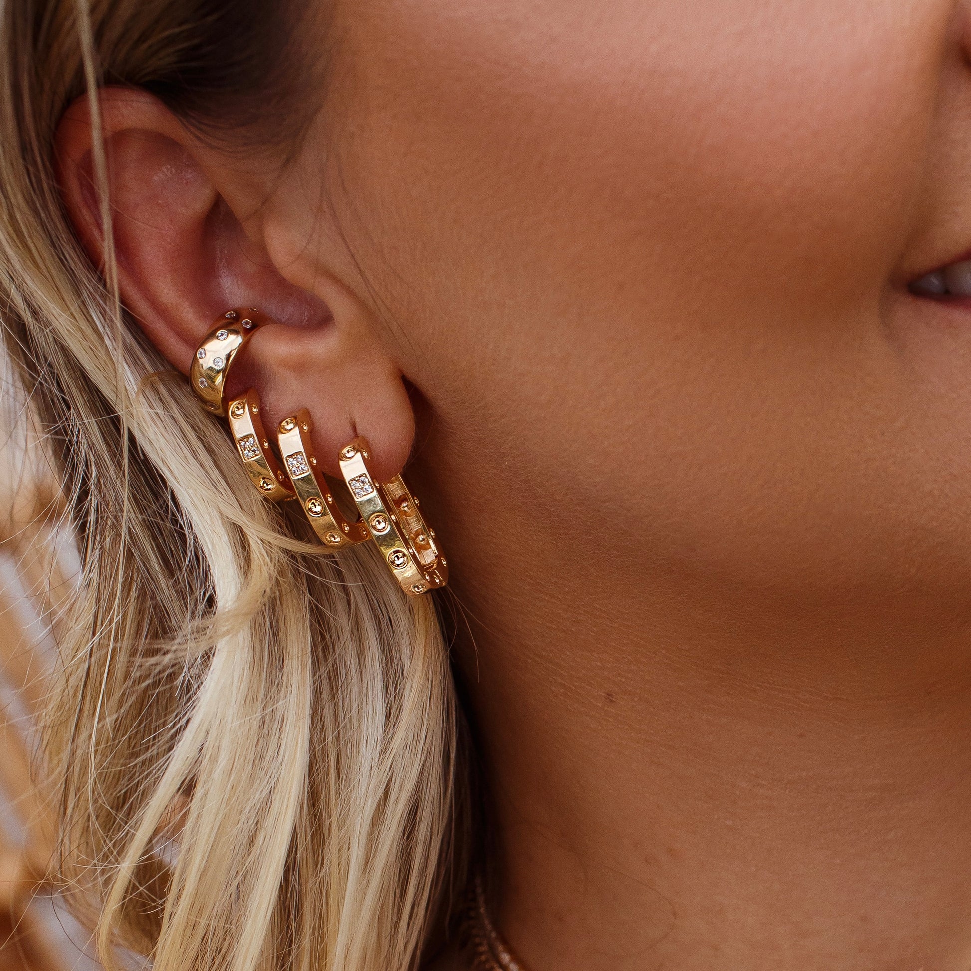 Elevação e requinte são garantidos com nosso brinco argola quadrada, com detalhes geométricos e banho de ouro 18k. Adicione um toque de luxo a qualquer look com essa peça única e sofisticada. Surpreenda-se com a qualidade e elegância desse brinco!