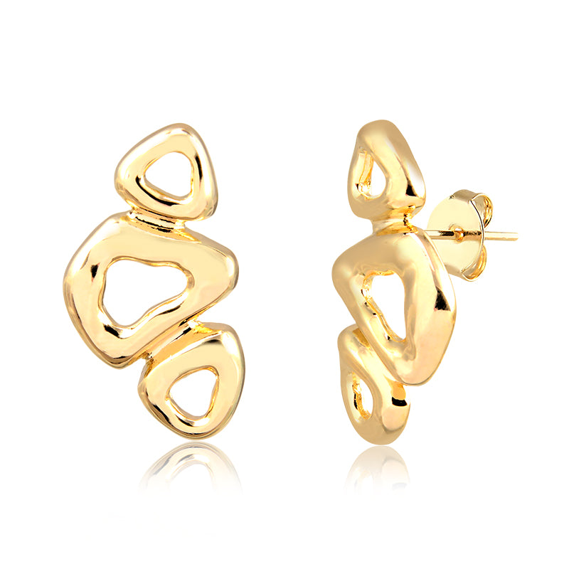 Brinco ear cuff triângulos orgânicos vazados com banho de ouro 18k
