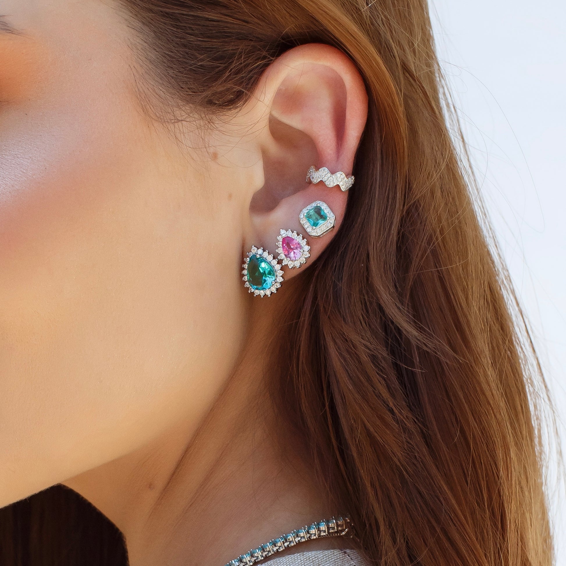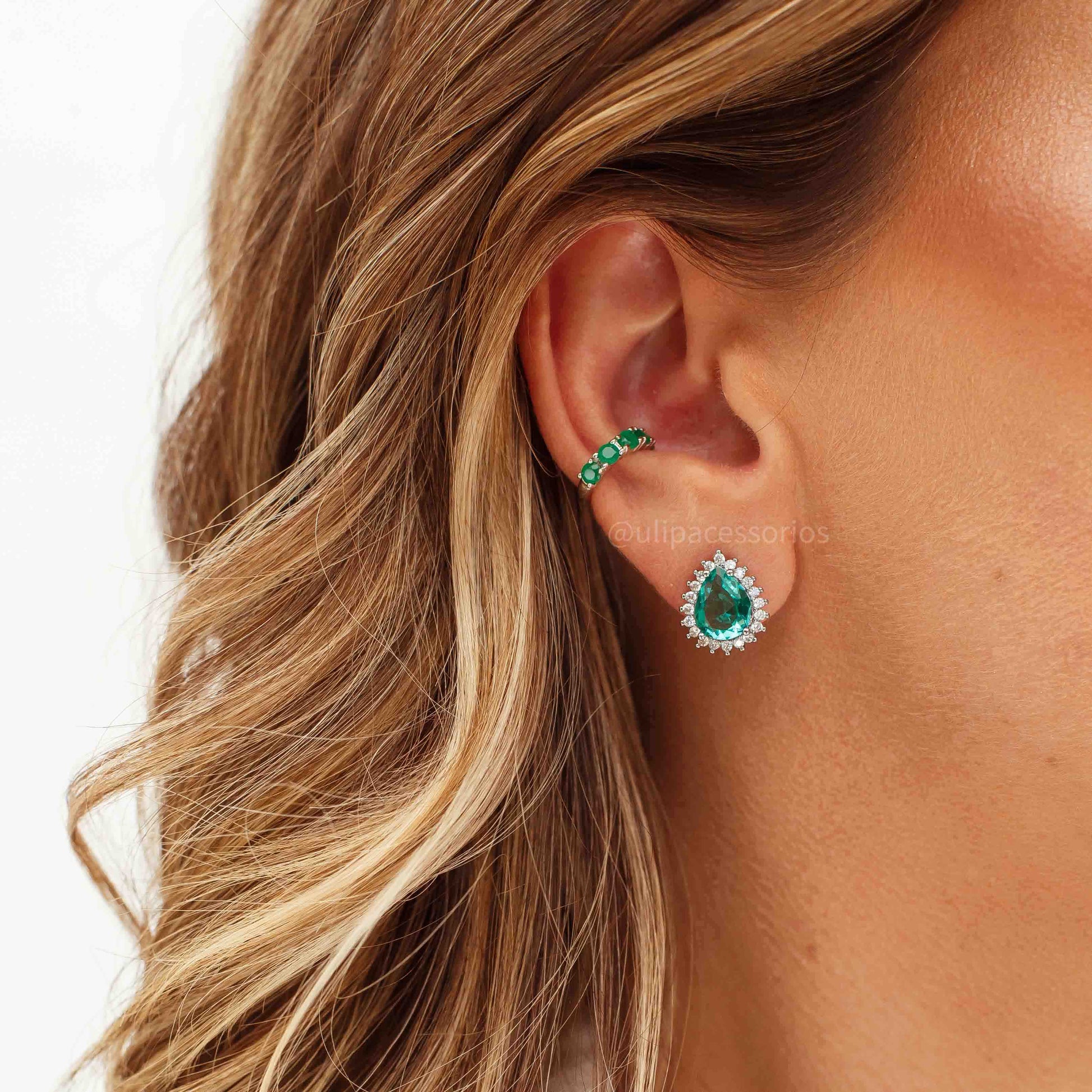 Este brinco gota de turmalina com entorno cravejado e banho de ródio branco é a escolha perfeita para quem deseja sofisticação e brilho duradouro. Seu design elegante realça qualquer look, enquanto o banho de ródio garante resistência e acabamento impecável. Um acessório que combina luxo e delicadeza para destacar sua beleza em qualquer ocasião.