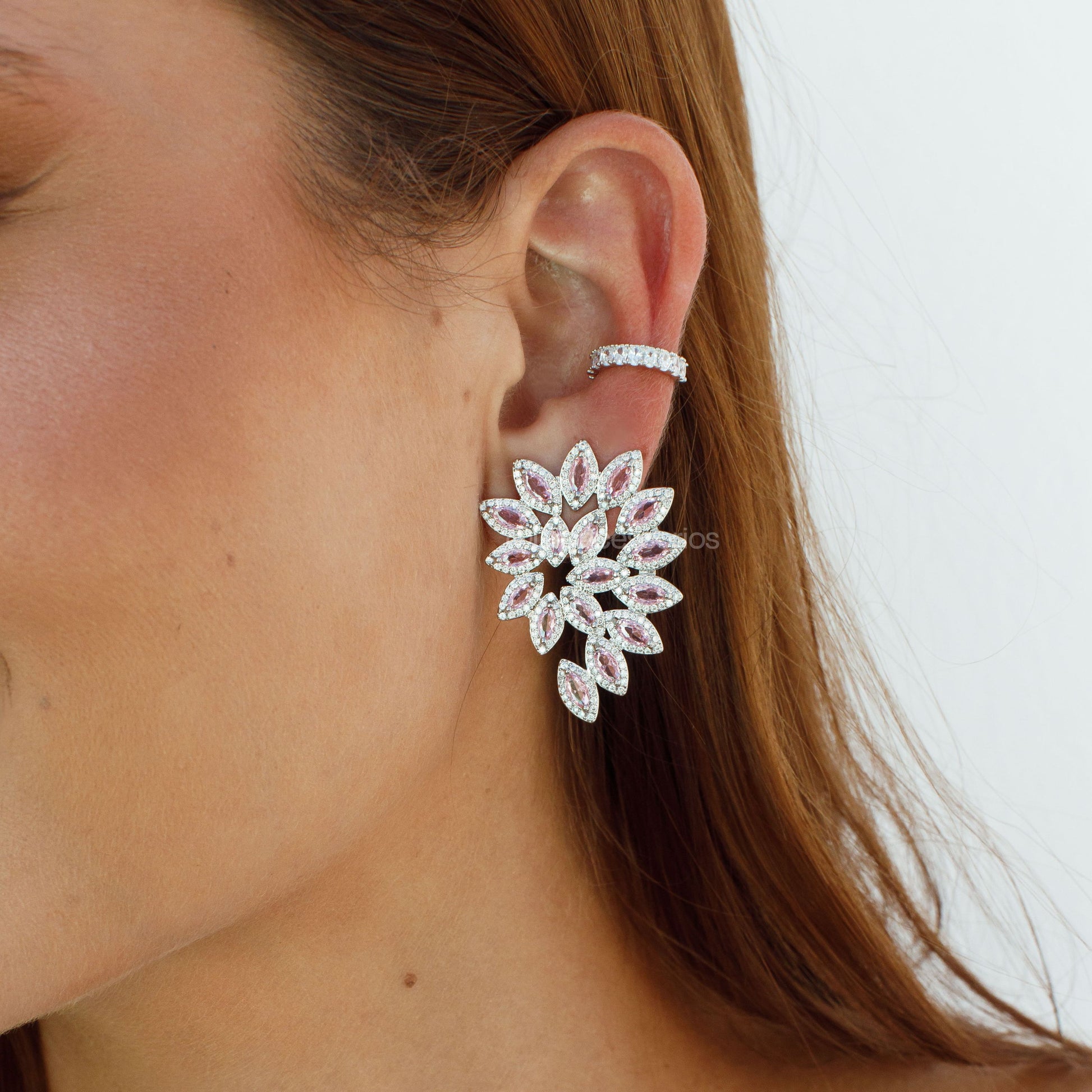 Delicadeza que conquista. Estes brincos em rosa de luxo combinam uma tonalidade suave e feminina com o design elegante em gota. O acabamento em ródio branco proporciona um contraste sofisticado que realça a cor da pedra. Versáteis e refinados, funcionam perfeitamente tanto para looks minimalistas quanto para ocasiões especiais, adicionando um toque de romantismo e sofisticação. Um acessório que complementa qualquer estilo pessoal com elegância duradoura.