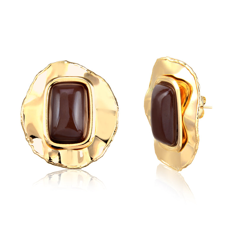 Brinco maxi oval orgânico com retângulo marrom e banho de ouro 18k que transforma qualquer produção em um statement de estilo. O design oversized com formas geométricas traz movimento e sofisticação, enquanto o acabamento em ouro 18k garante brilho duradouro e elegância atemporal. Perfeito para quem quer elevar o visual com uma peça marcante que combina tendência e qualidade. Esse é o acessório que faltava para completar seu look com personalidade e refinamento.