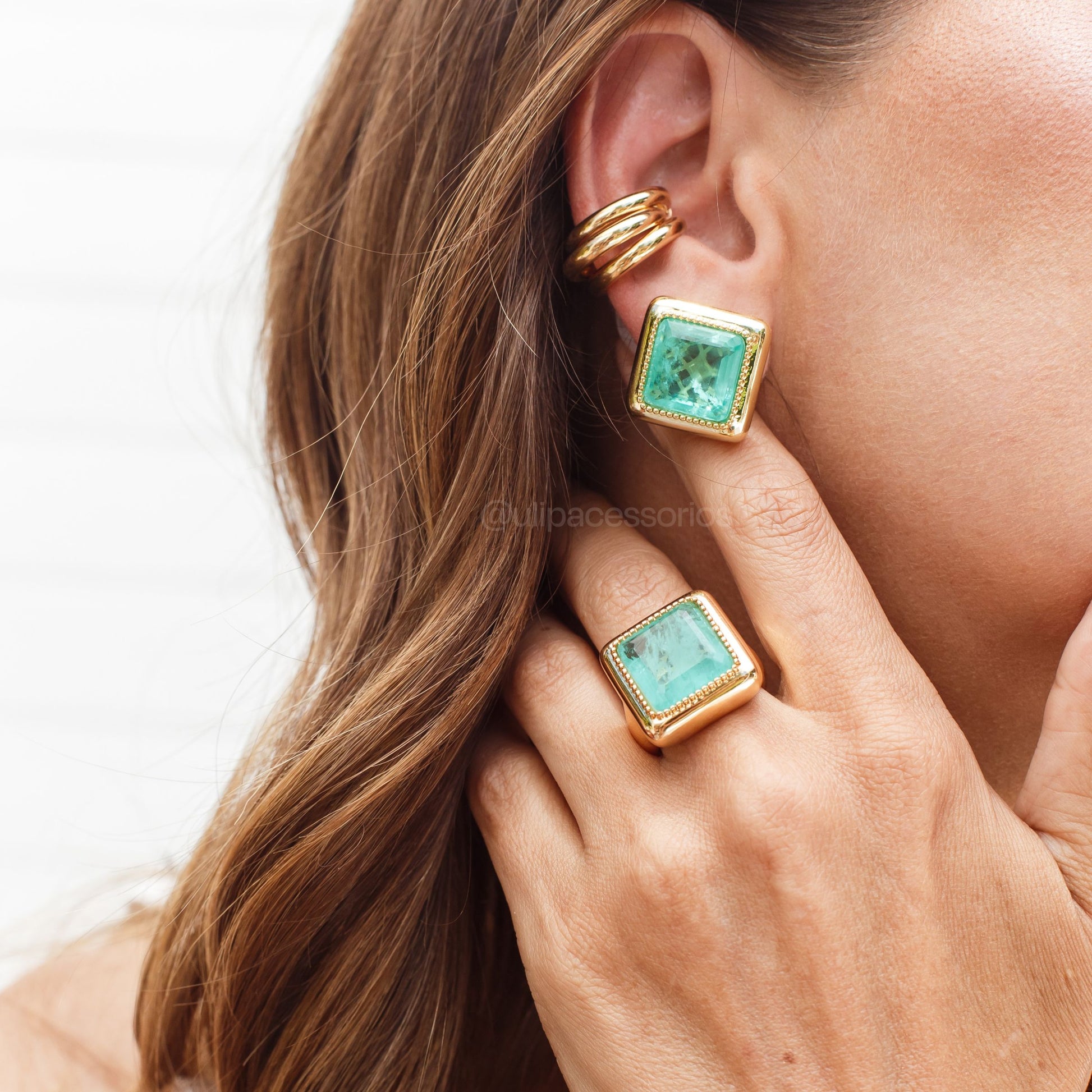 Exiba elegância incomparável com este brinco maxi quadrado que combina a beleza vibrante da esmeralda colombiana com o refinamento do banho de ouro 18k. O design geométrico e generoso valoriza o rosto, enquanto a pedra natural confere autenticidade e prestígio. Ideal para quem busca um acessório que transcende tendências, transformando qualquer look em uma declaração de sofisticação. Luxo acessível que faz diferença.