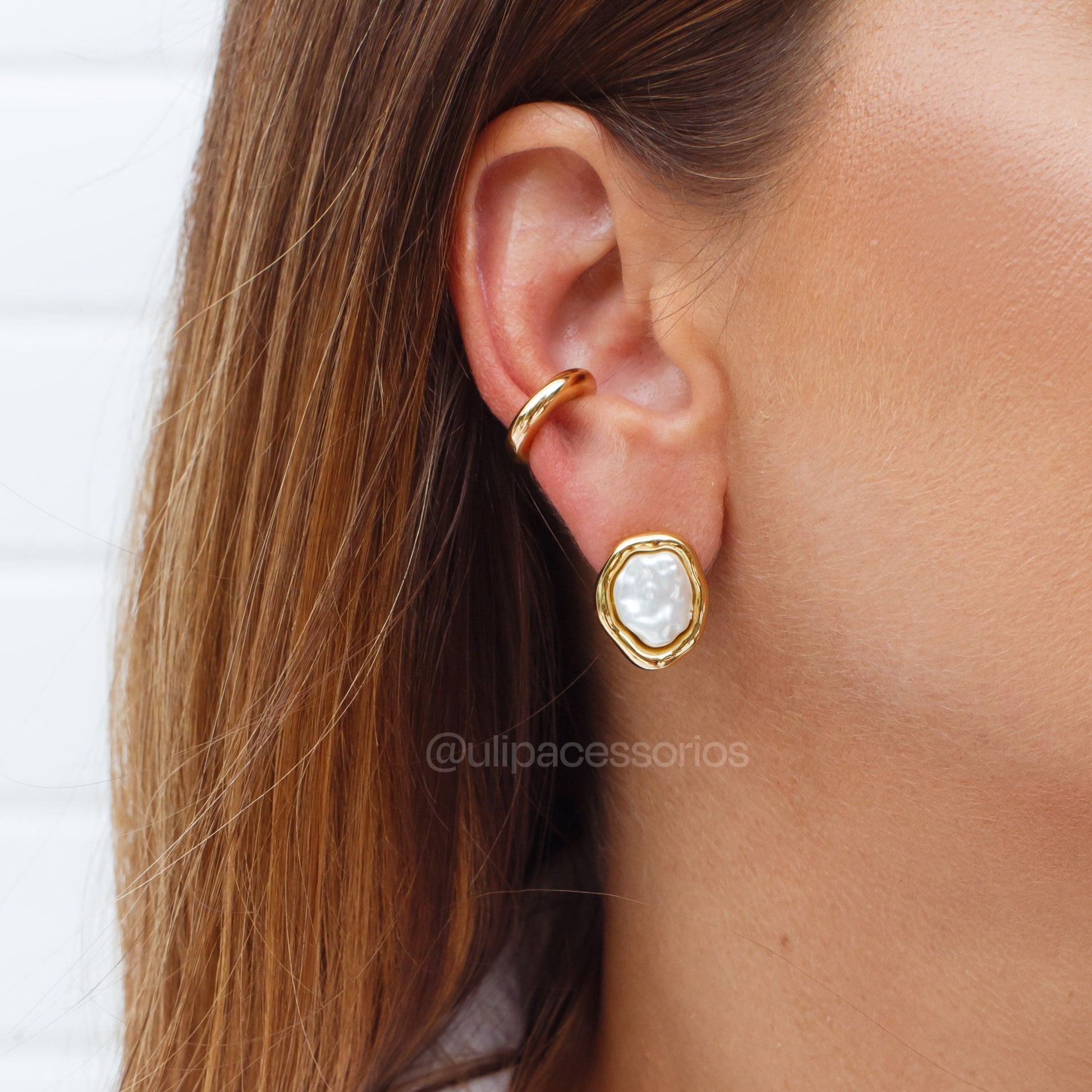 Brinco orgânico pérola entorno liso com banho de ouro 18k Refinamento que fala por si. A pérola orgânica deste brinco é envolvida por um contorno liso e discreto, criando uma composição equilibrada e sofisticada. Com banho de ouro 18k, o acessório ganha profundidade e brilho, realçando a luminosidade da pérola. Ideal para quem busca peças atemporais que elevam qualquer visual com elegância discreta. Um investimento em estilo que nunca sai de moda.