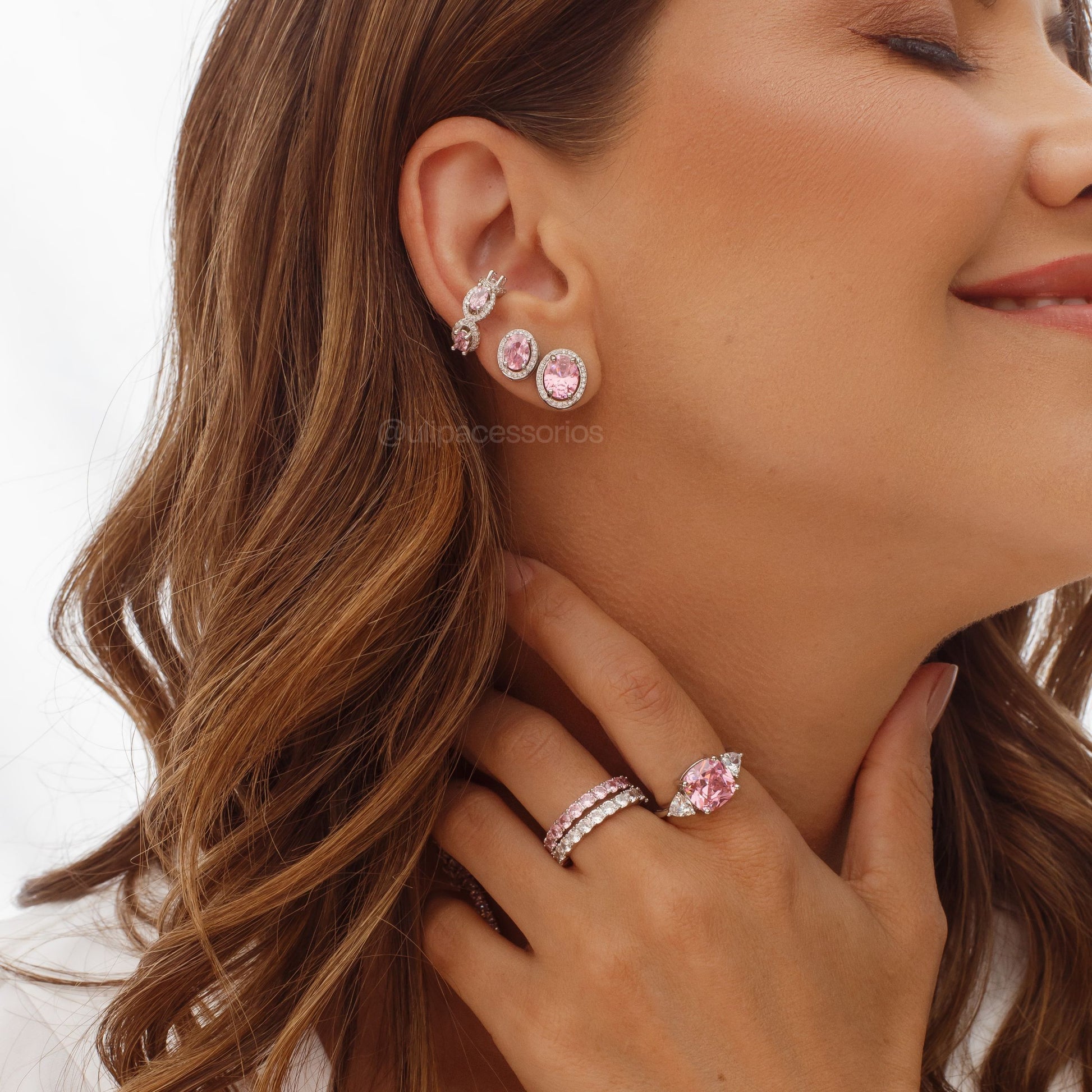 Este brinco oval menor combina delicadeza e charme, com zircônias rosa cuidadosamente cravejadas ao entorno que destacam seu brilho único. O banho de ródio branco oferece proteção e um acabamento luminoso, garantindo durabilidade e sofisticação. Uma escolha perfeita para quem deseja acrescentar um toque elegante e feminino ao visual, seja em eventos especiais ou no dia a dia.