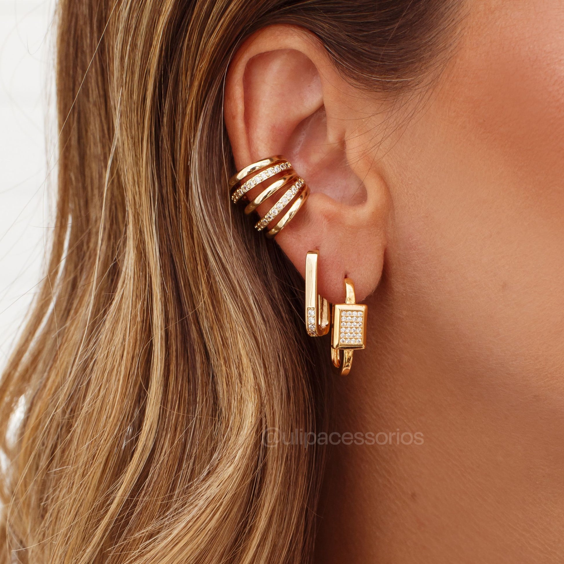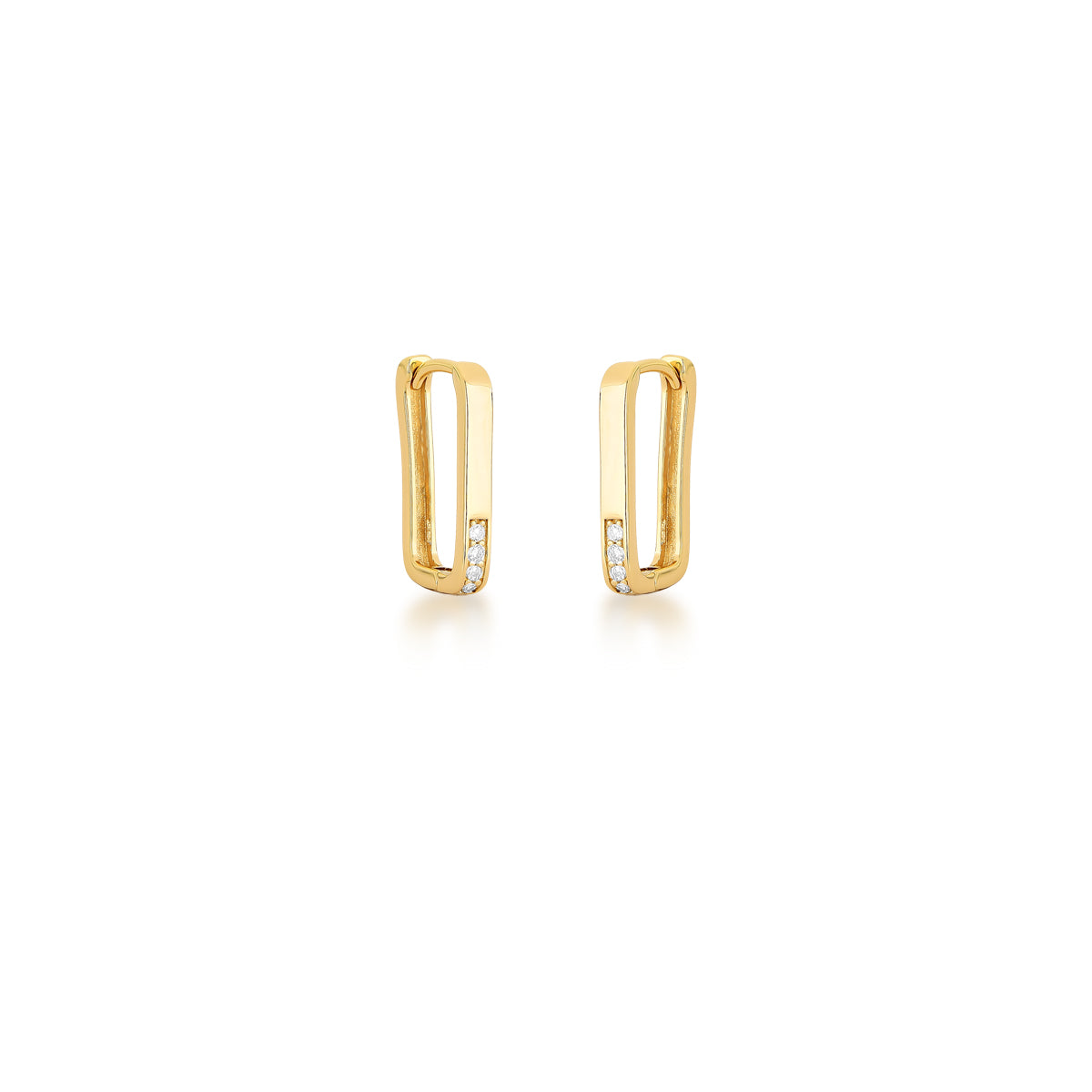 Este brinco retangular com detalhe cravejado e banho de ouro 18k combina elegância e sofisticação, realçando seu visual com um toque de brilho delicado. Perfeito para ocasiões especiais ou para dar um charme extra ao dia a dia, ele valoriza seu estilo com acabamento refinado e durabilidade garantida pelo banho de ouro. Um acessório que destaca sua beleza com delicadeza e modernidade.