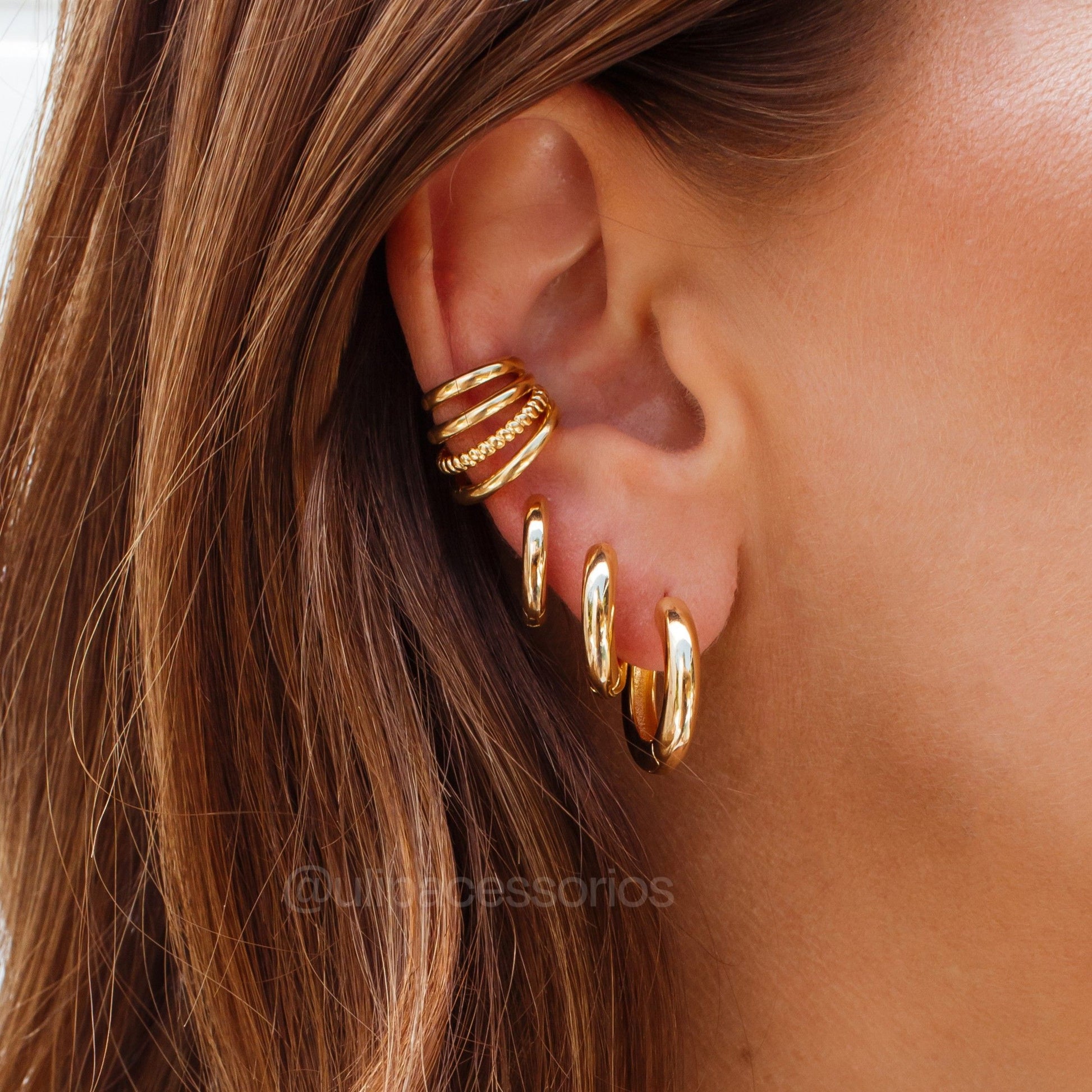 Conjunto elegante com três argolas lisas que combinam perfeitamente entre si. Cada peça recebe banho de ouro 18k, garantindo brilho duradouro e acabamento sofisticado. Ideal para criar looks versáteis, use as argolas juntas para um efeito impactante ou separe-as conforme seu estilo. Material resistente que mantém a beleza por muito tempo. Perfeito para quem busca acessórios de qualidade que elevam qualquer produção com simplicidade e classe.