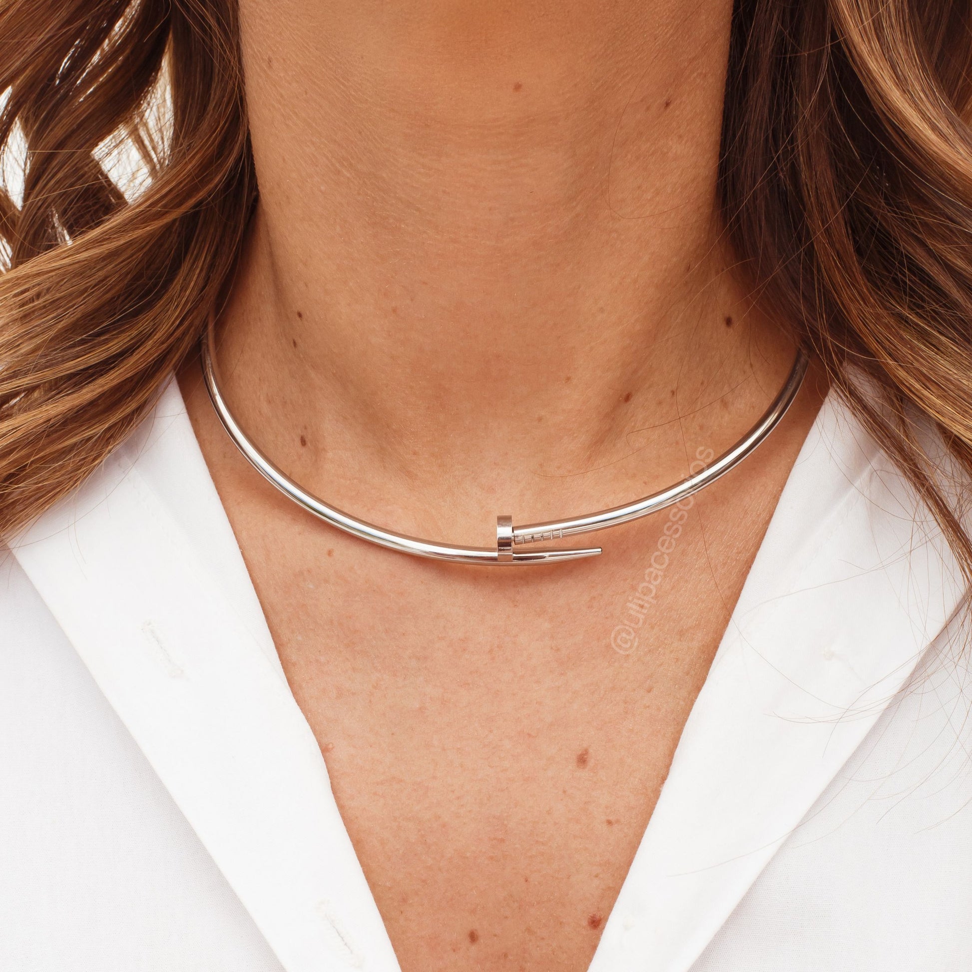 O colar aro prego em aço prateado é uma peça imponente que exala poder e sofisticação. Inspirado na alta joalheria, seu design marcante valoriza seu estilo com autenticidade e elegância. Feito para quem quer destacar sua presença, este colar combina resistência e acabamento refinado, tornando-se o destaque perfeito em qualquer ocasião.