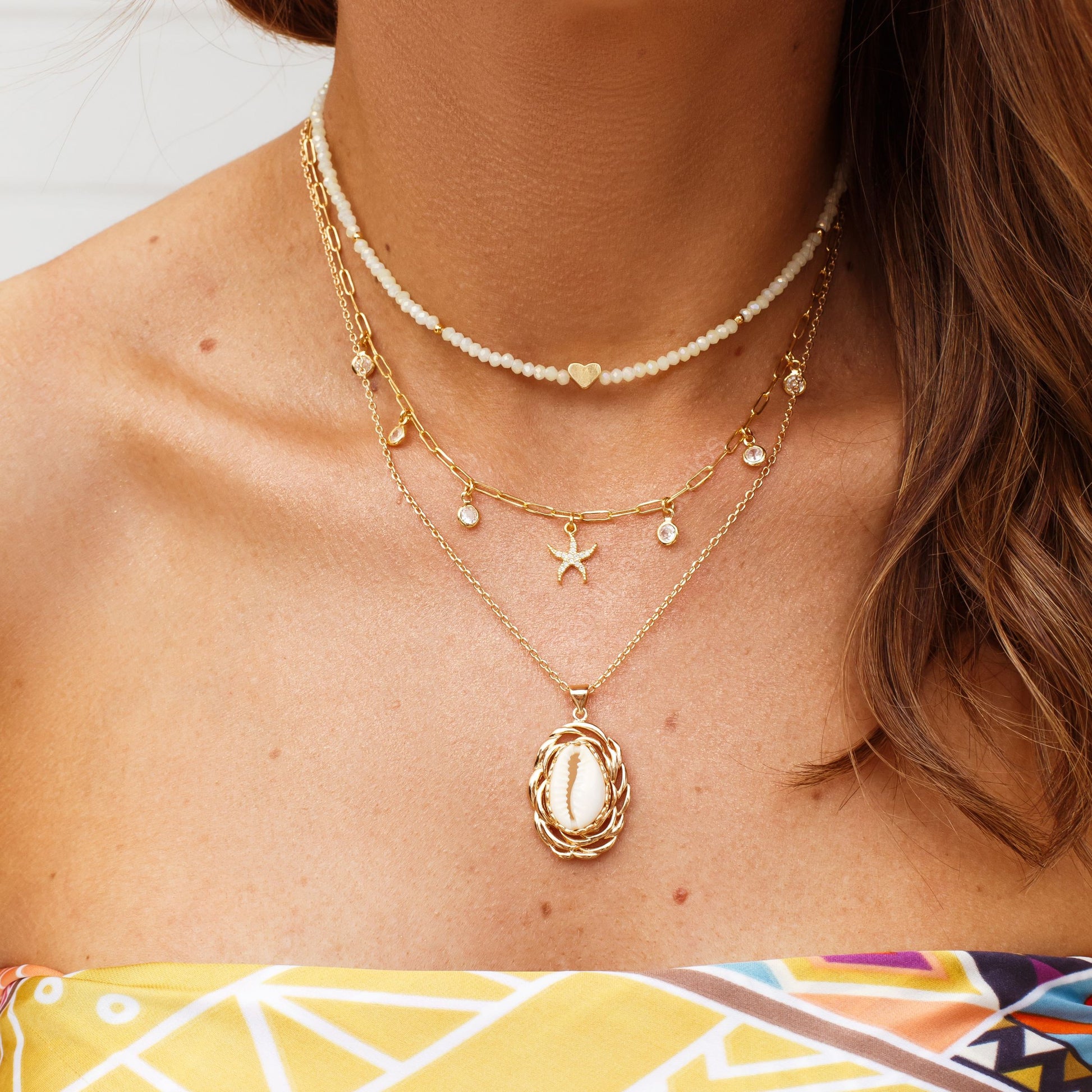 Este colar combina a suavidade dos cristais manteiga com o charme do pingente em formato de coração, tudo revestido com banho de ouro 18k para um brilho duradouro. Perfeito para destacar seu estilo com elegância e delicadeza, ele adiciona um toque sofisticado a qualquer look, tornando-se uma peça indispensável no seu porta-joias.