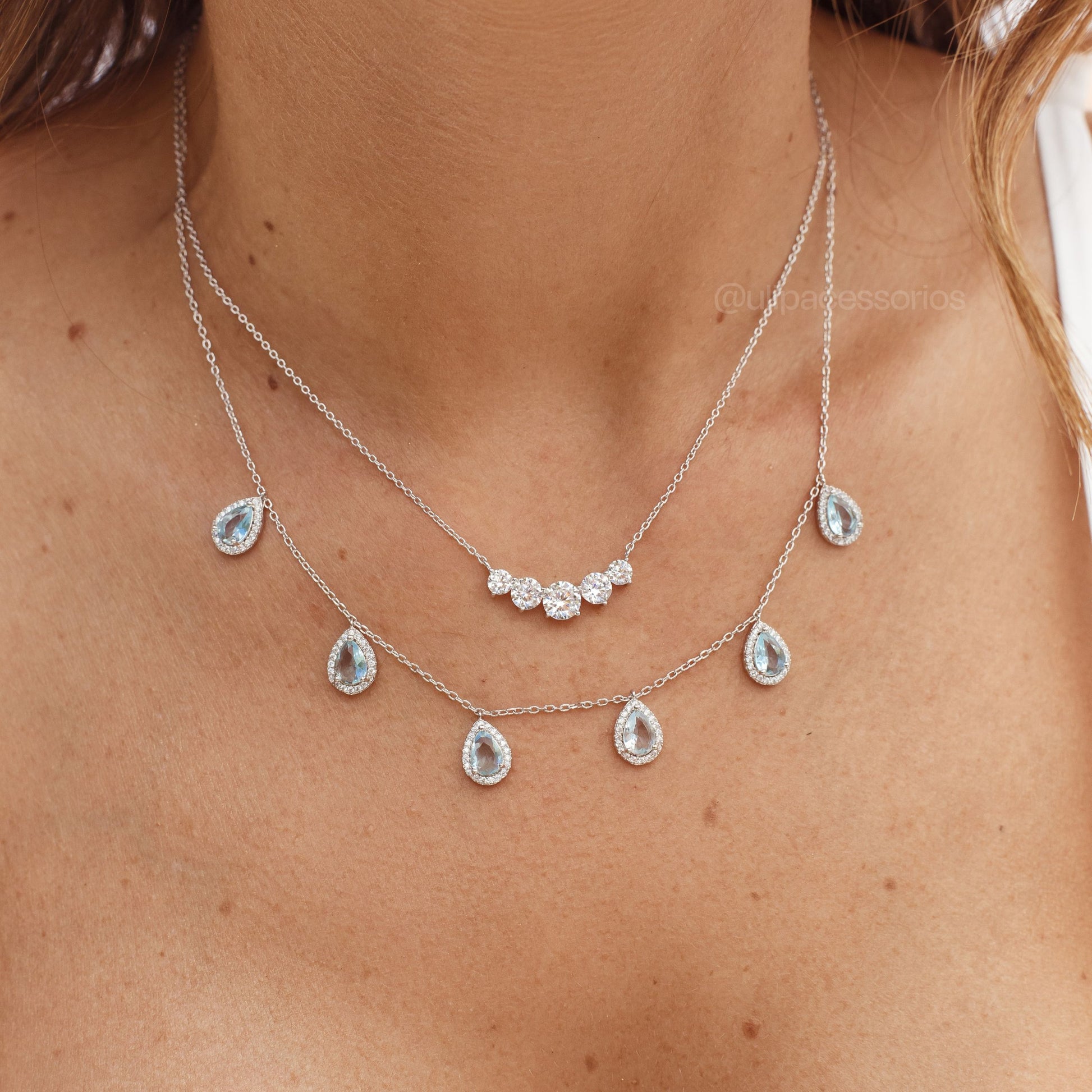 Colar gotas topázio entorno cravejado e banho de ródio branco