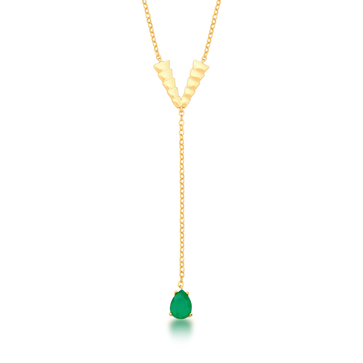 Este colar gravatinha em formato V une escamas lisas a uma delicada gota de esmeralda, tudo revestido com banho de ouro 18k. Uma joia sofisticada que valoriza seu estilo com elegância e um toque de cor vibrante, ideal para destacar sua personalidade em qualquer ocasião.