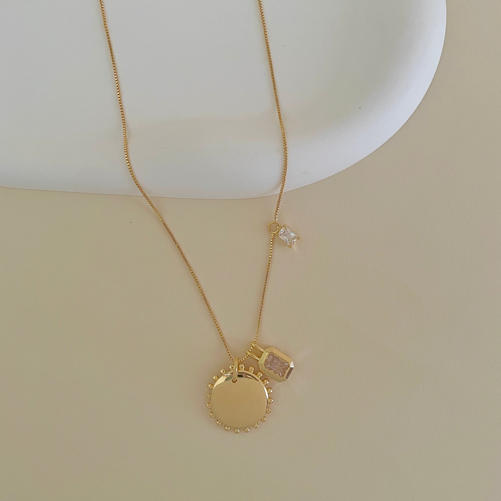 Este colar longo combina elegância e sofisticação com sua medalha lisa e pingente retângulo em cristal, ambos banhados a ouro 18k. Seu design delicado valoriza qualquer look, proporcionando um toque de brilho sutil e moderno. Perfeito para quem busca um acessório versátil que realça a beleza.