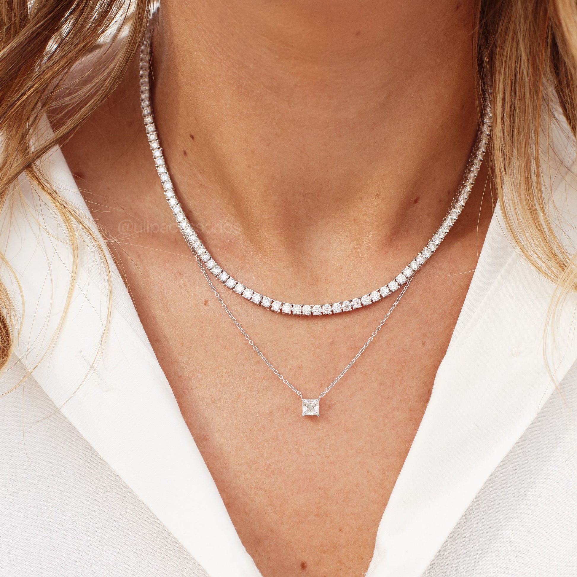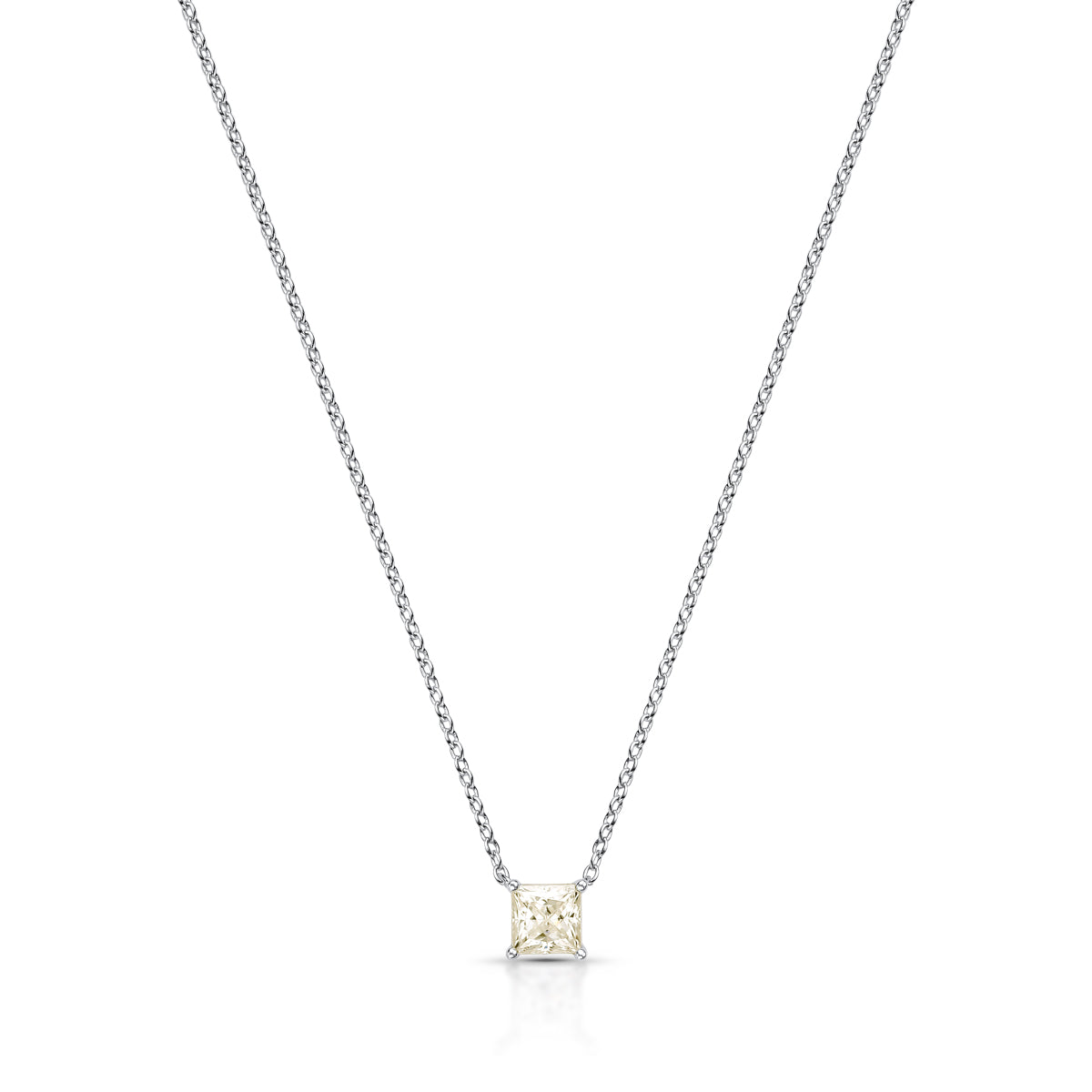 Este colar apresenta uma pedra de moissanite quadrada de 5mm, cravejada em prata 925, combinando elegância e durabilidade. A moissanite oferece brilho intenso e resistência, enquanto a prata 925 garante qualidade e conforto para o uso diário. Uma peça sofisticada que valoriza qualquer look com um toque de luxo acessível.
