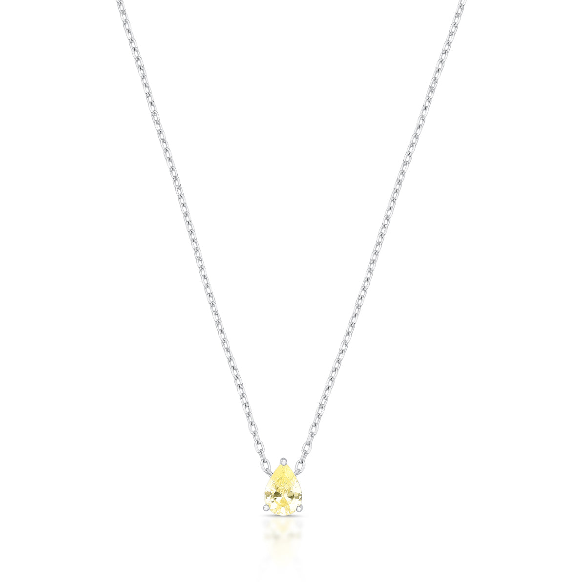 Este colar é uma joia delicada feita em prata 925, com banho de ródio branco que realça seu brilho. Seu pingente gota com citrino acrescenta um toque de elegância e sofisticação, perfeito para quem busca uma peça única e refinada para qualquer ocasião.
