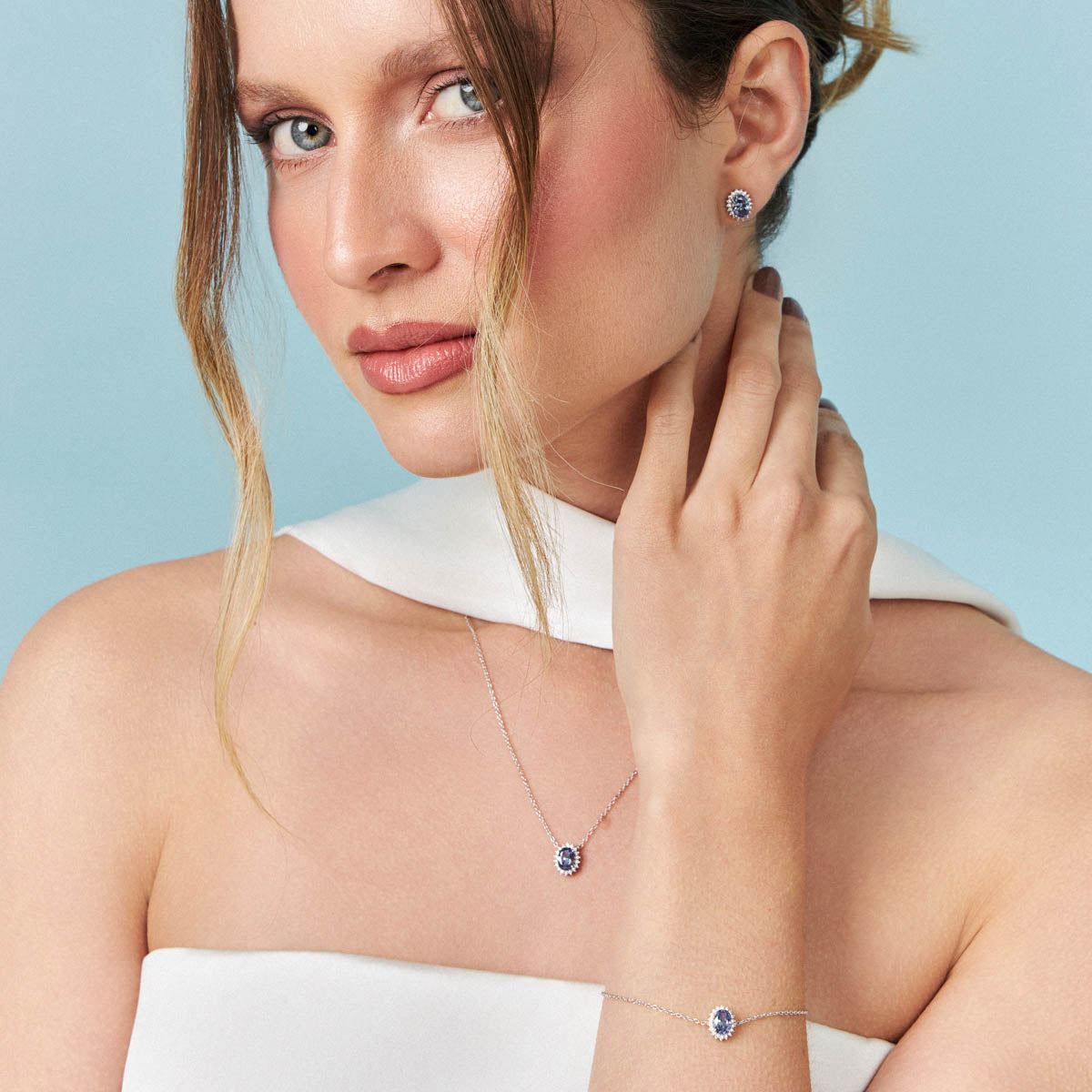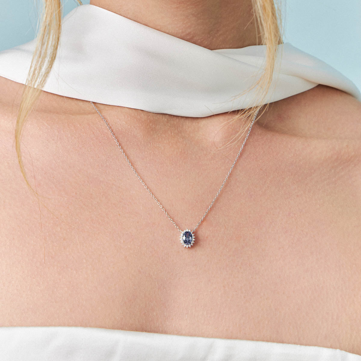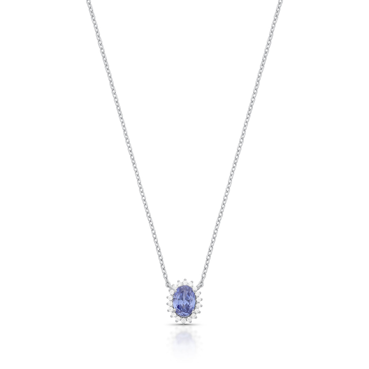 Realce sua elegância com este colar em prata 925, que traz uma tanzanita oval deslumbrante cercada por um delicado entorno cravejado. A combinação do brilho sutil da prata com o tom único da tanzanita transforma qualquer look, oferecendo sofisticação e charme em uma peça exclusiva. Perfeito para ocasiões especiais ou para dar um toque refinado ao seu dia a dia.