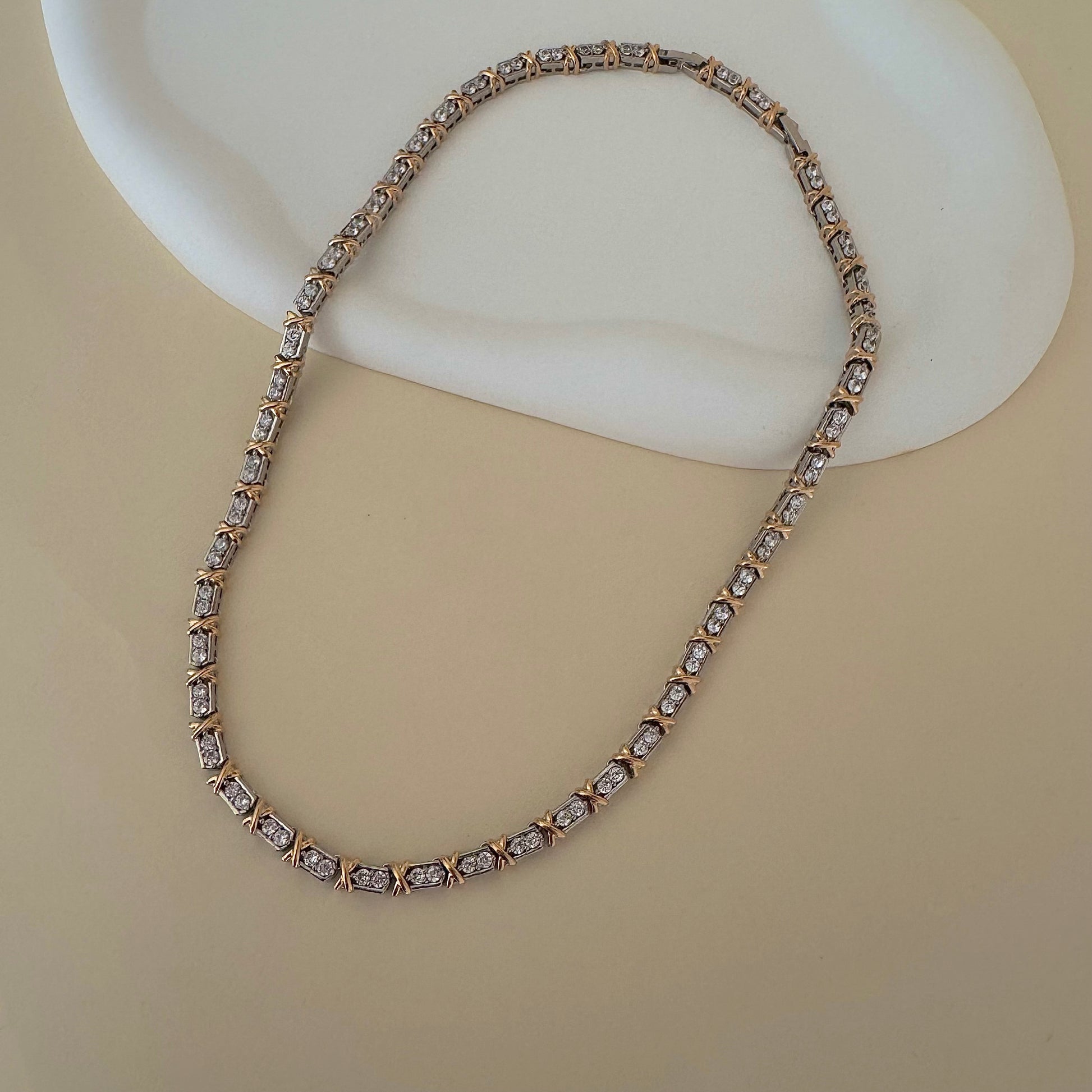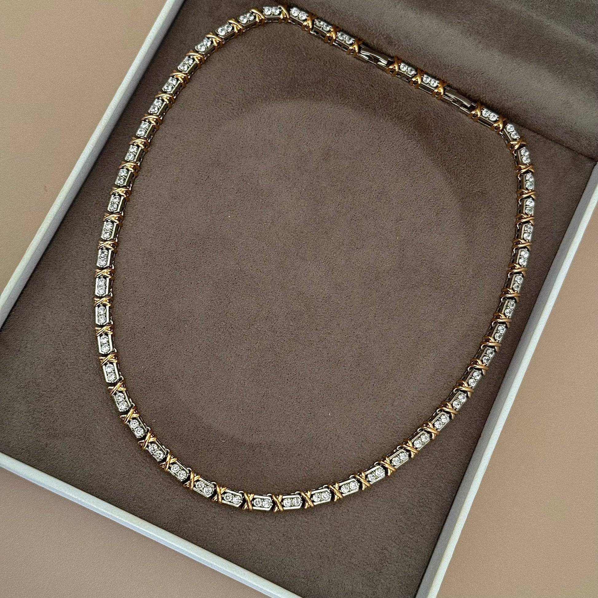 Este colar riviera é uma obra-prima inspirada na alta joalheria! Com detalhes em dourado e banho de ródio branco, sua trama rígida garante que as pedras não se viram. O fecho de joalheria proporciona segurança e elegância. Com 42cm de comprimento e extensor de 3cm, é o acessório perfeito para adicionar sofisticação e estilo ao seu visual.