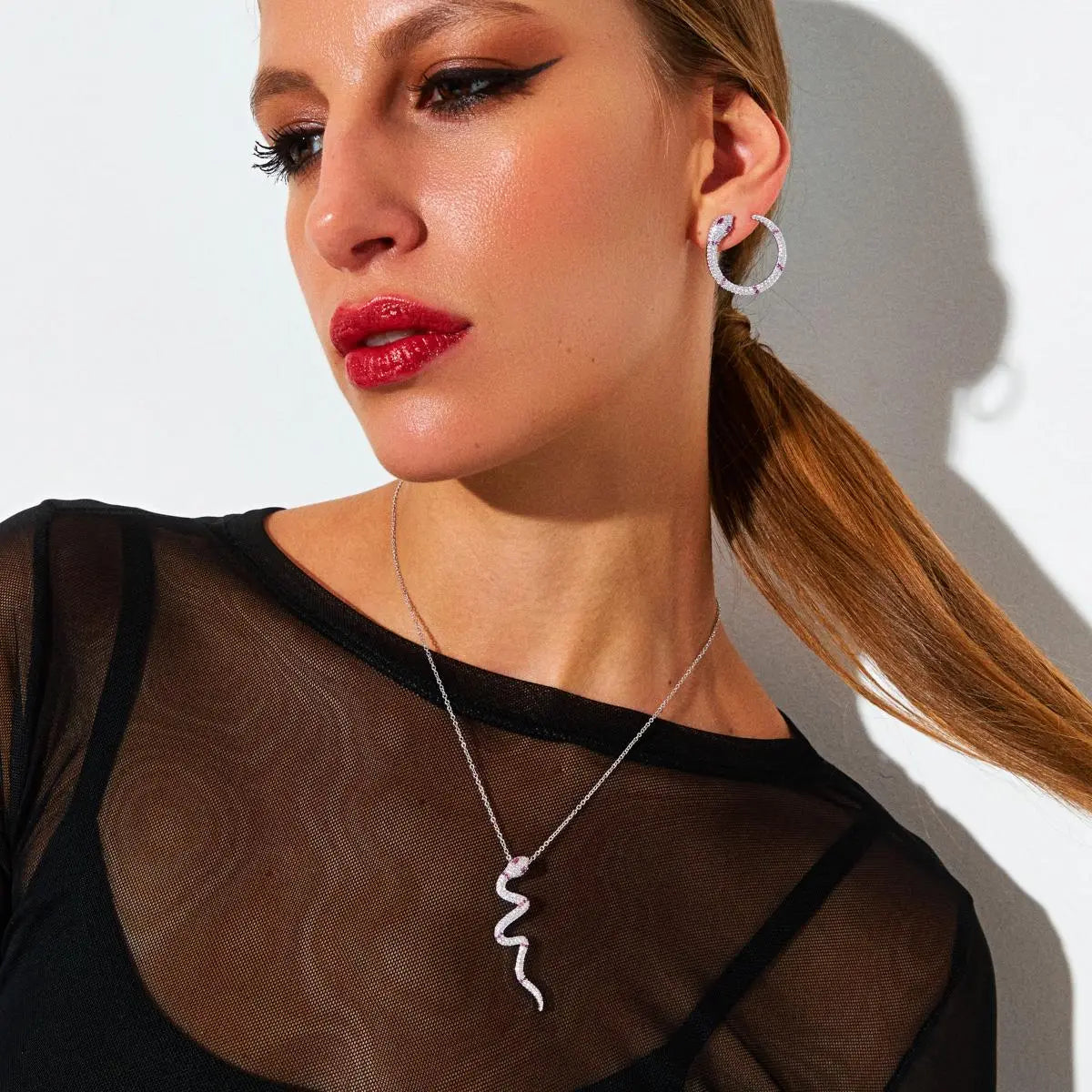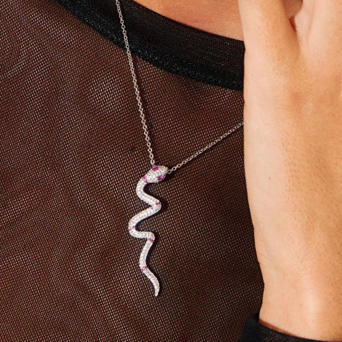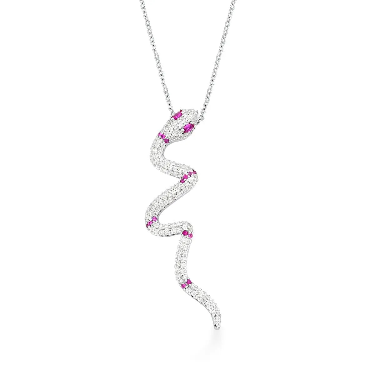 Este colar snake cravejado com delicados detalhes em pink e banho de ródio branco combina elegância e modernidade. Seu design sofisticado realça qualquer look, oferecendo brilho e durabilidade graças ao acabamento em ródio branco. Perfeito para quem busca um acessório que se destaque com um toque de cor sutil e charme contemporâneo.