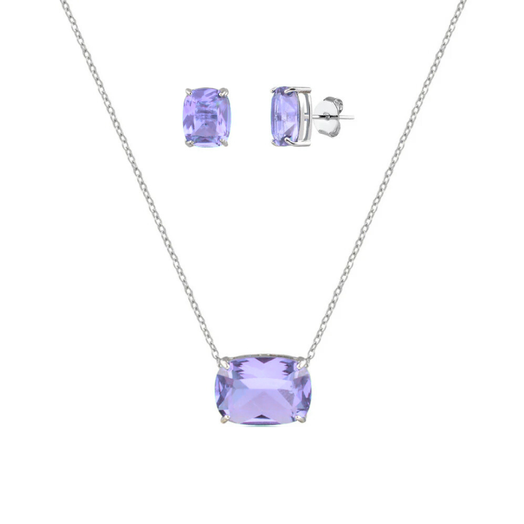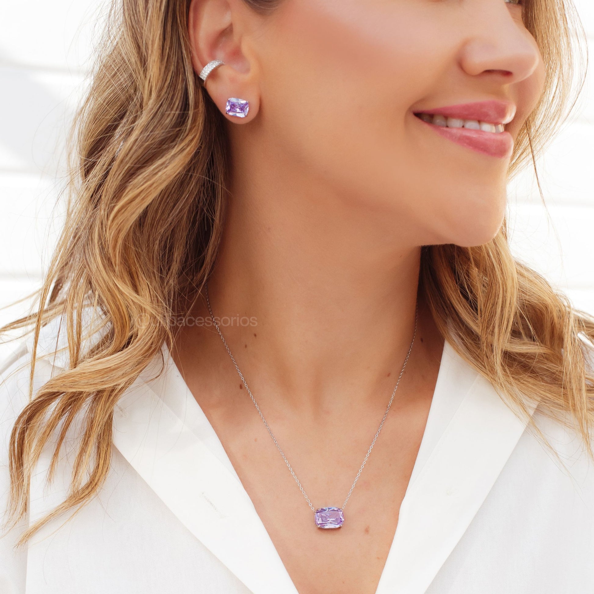 Este conjunto retangular lavanda com banho de ródio branco é a escolha ideal para quem deseja unir sofisticação e delicadeza. O banho de ródio branco oferece um brilho intenso, enquanto o tom lavanda traz um toque suave e elegante. Um acessório versátil que realça seu estilo em qualquer ocasião, garantindo um visual moderno e cheio de charme.